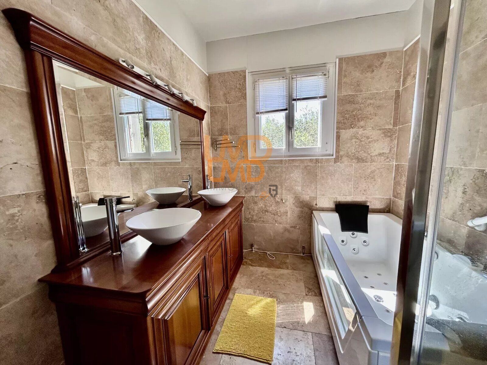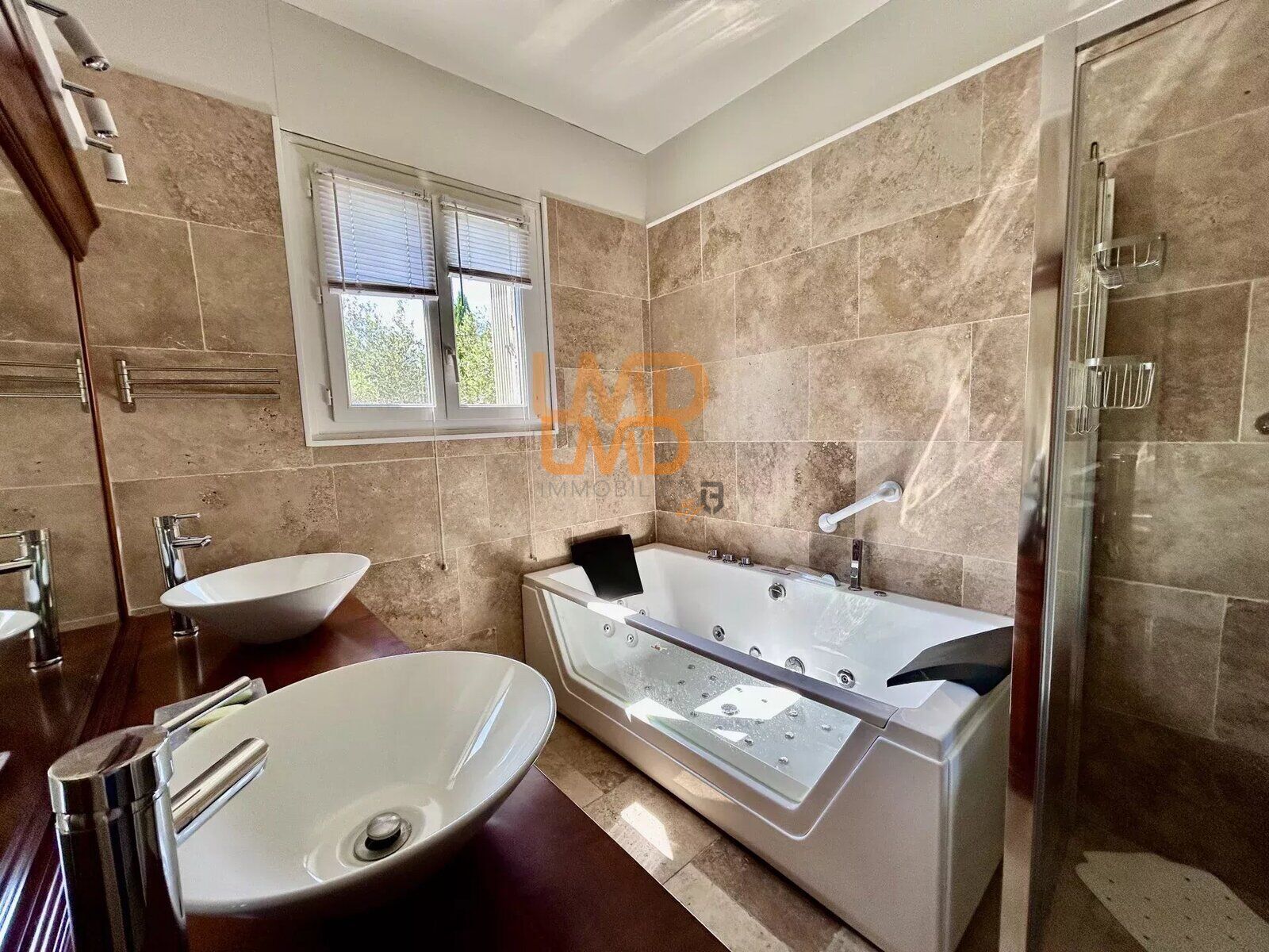 Du palier de distribution, s'ouvre les dégagements permettant d'accéder à 3 vastes chambres chacune avec ses dressings et une salle de bain équipée d'un meuble avec double vasque et d'une baignoire semi enterrée, la pièce d’eau dispose d'un dressing, un WC séparé.