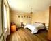 De l’autre côté, une grande chambre sur parquet massif, salle d’eau/bains, toilettes indépendants.