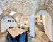 Le rez-de-chaussée, dispose d'un salon de 15 m2 environ, d'une une salle à manger voutée avec ses pierres apparentes de 12 m2 environ ainsi qu'une cuisine ouverte équipée et aménagée et un cellier.