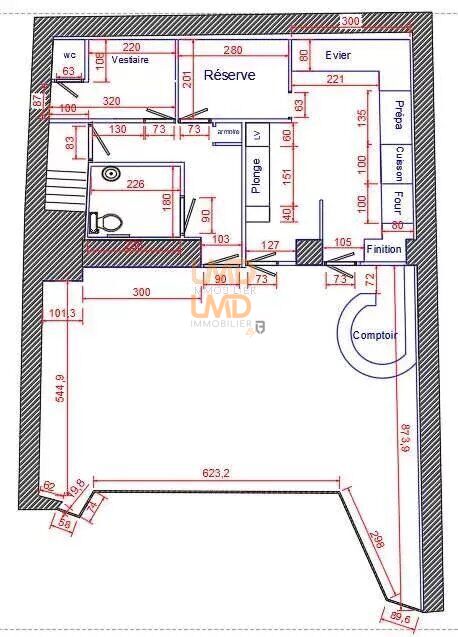 Ce bien se compose d'un local commerciale de 100m² avec très grande vitrine, l'accès et les wc sont adaptés PMR, porte et plafond coupe feu.