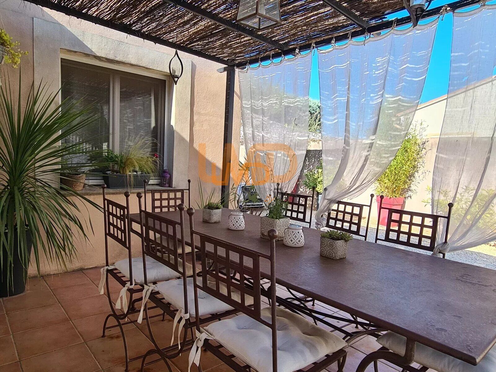 Chauffage au gaz, climatisation réversible, doubles vitrages, volets bois et volets roulants, moustiquaires, tout-à-l'égout, eau de la ville, pergola, portail électrique...