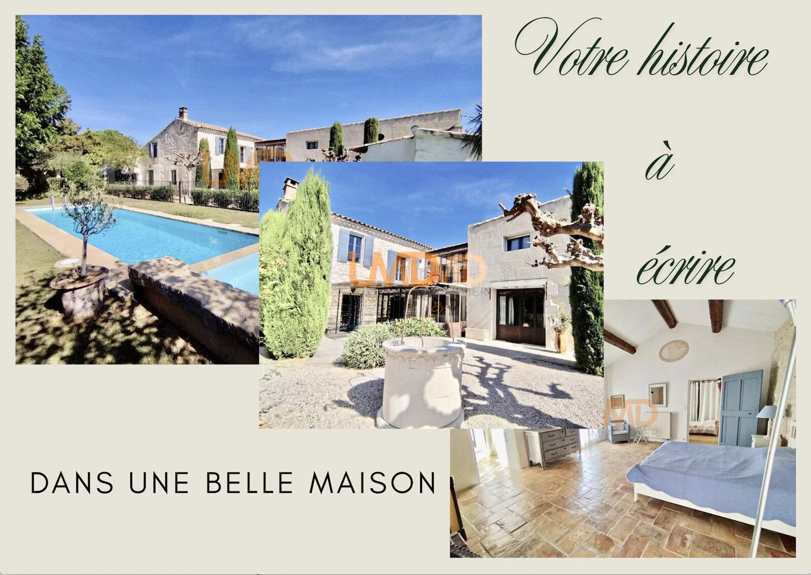 Implantée sur plus de 1200 m2 de terrain paysagé, cette maison de 300 m2 habitable s'articule autour d’une belle cour avec véranda et terrasse, face à la piscine à deux bassins.