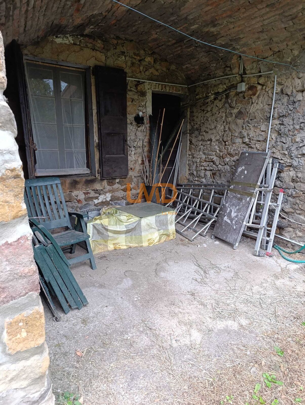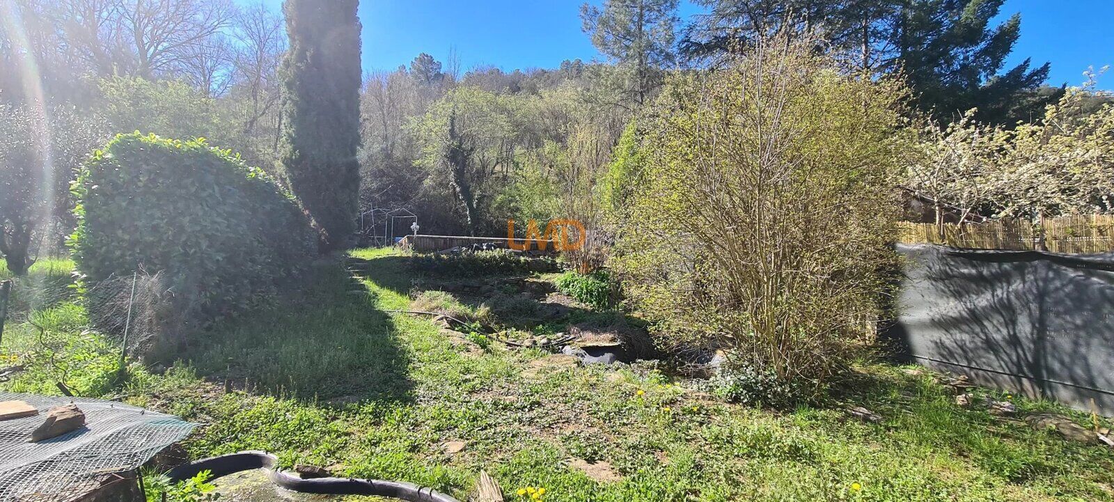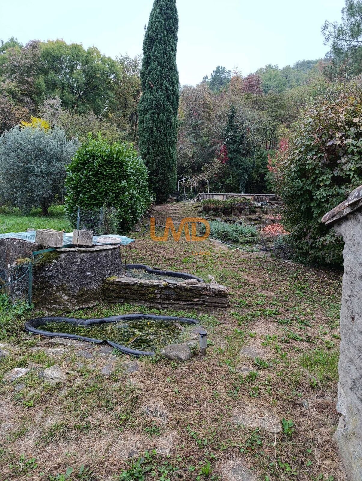 Le jardin, partiellement clos avec piscine en l'état, complète l’ensemble.