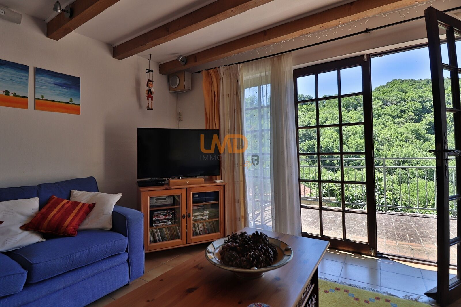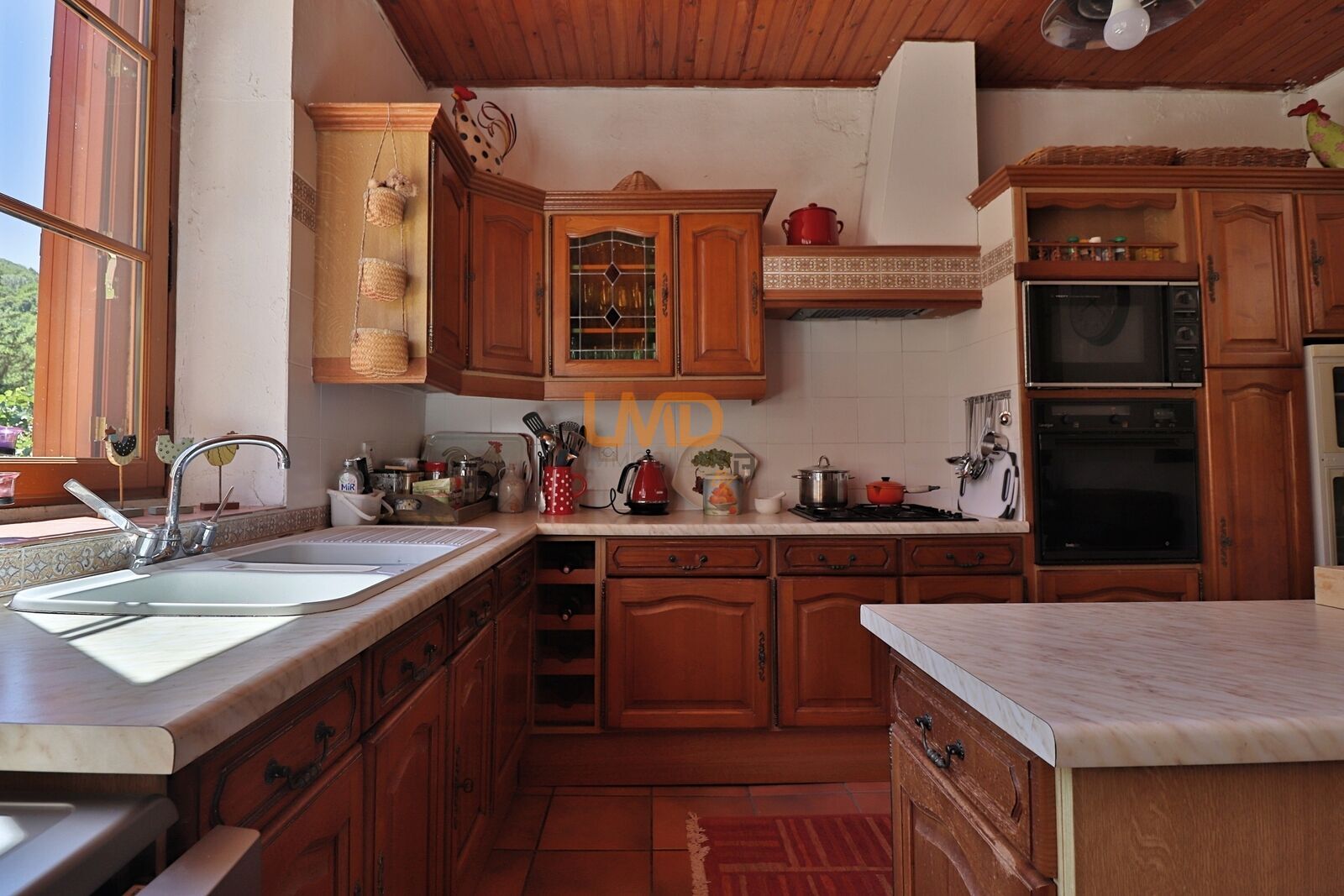 La maison se compose d'une pièce à vivre conviviale avec cuisine ouverte et équipée, d'un salon cosy avec une vue imprenable sur les collines, idéal pour se détendre, de trois chambres dont une en rez-de-chaussée, d'une salle d’eau avec WC récemment rénovée et d'une salle d'eau/buanderie aménagée avec accès par la cour.