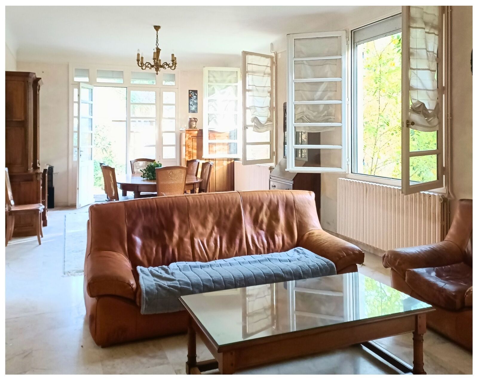 Implantée sur une belle parcelle arborée de 1 543 m², la maison développe plus de 200 m² habitables : un vaste séjour double avec cheminée, une véranda plein sud, six chambres, un bureau, ainsi que deux garages et une cave.
