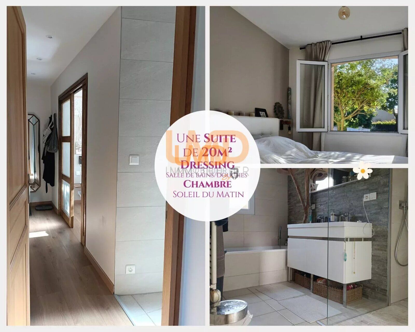 Espace de vie de 99 m² de plain-pied, comprenant un salon, une salle à manger et une cuisine semi-ouverte avec une verrière, orienté sud-ouest avec une terrasse de plus de 20 m² et un jardin lumineux. De la cuisine accès à une buanderie menant au garage.