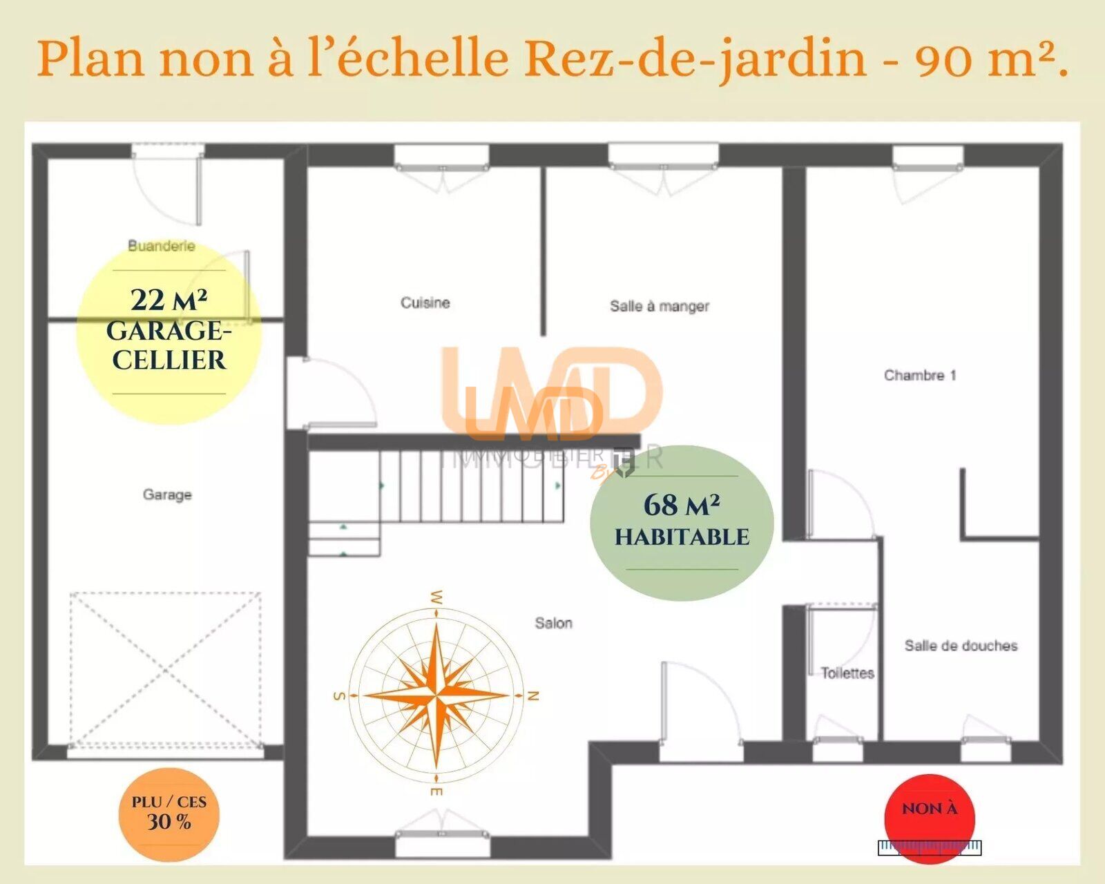 Un garage et un cellier sont intégrés à la maison, soit environ 22 m² utiles.