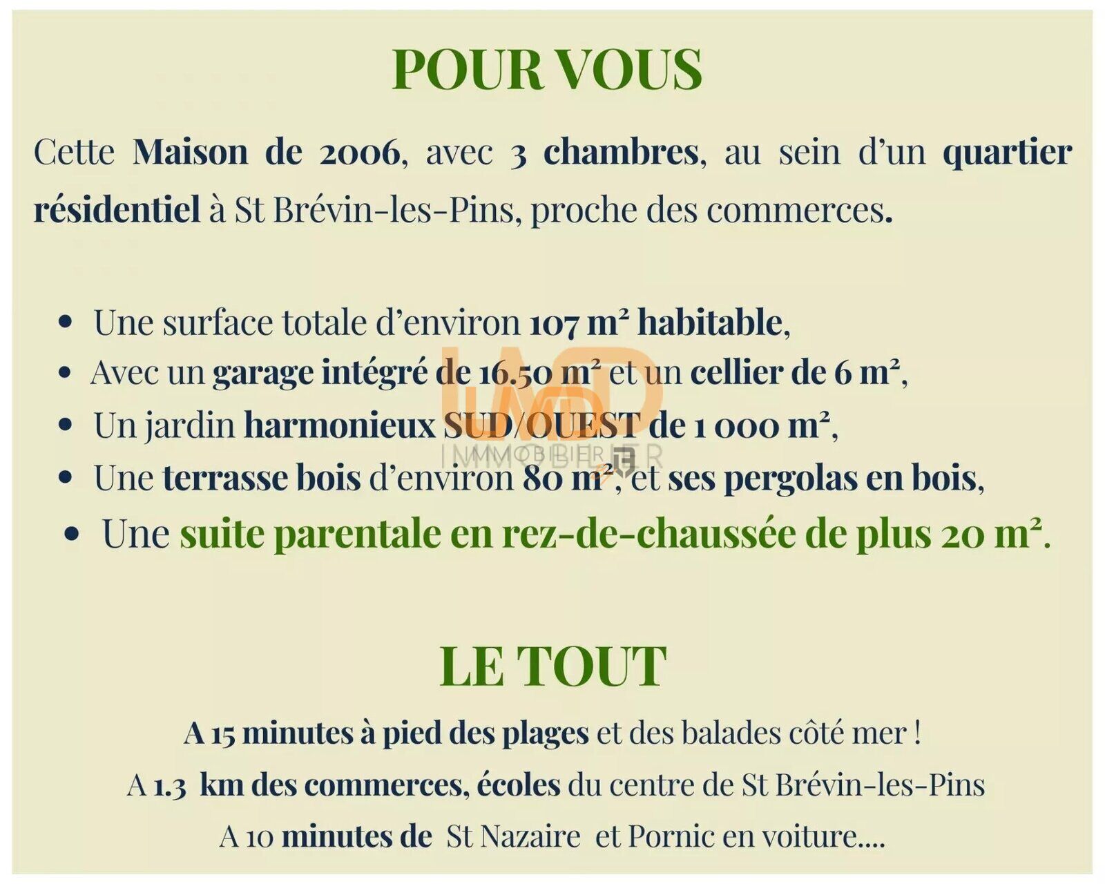 Son emplacement : Quartier résidentiel, proche des commodités, centre St Brevin Les Pins à moins de 15 minutes à pied, les écoles (passage bus scolaire et Brévibus devant la maison), balades sur les belles plages de St Brévin l’Océan seulement à 5 minutes en voiture.