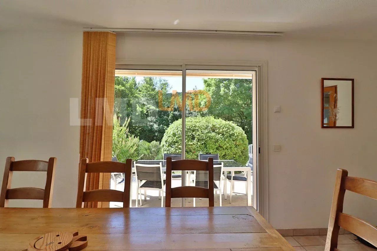 Elle se compose d'une entrée, d'un séjour très lumineux donnant sur une terrasse exposée plein sud, d'une cuisine séparée équipée avec un plan de travail en granit, de trois chambres avec placards intégrés, d'une salle de bain avec douche et baignoire, d'un wc séparé, d'une buanderie et d'un garage.