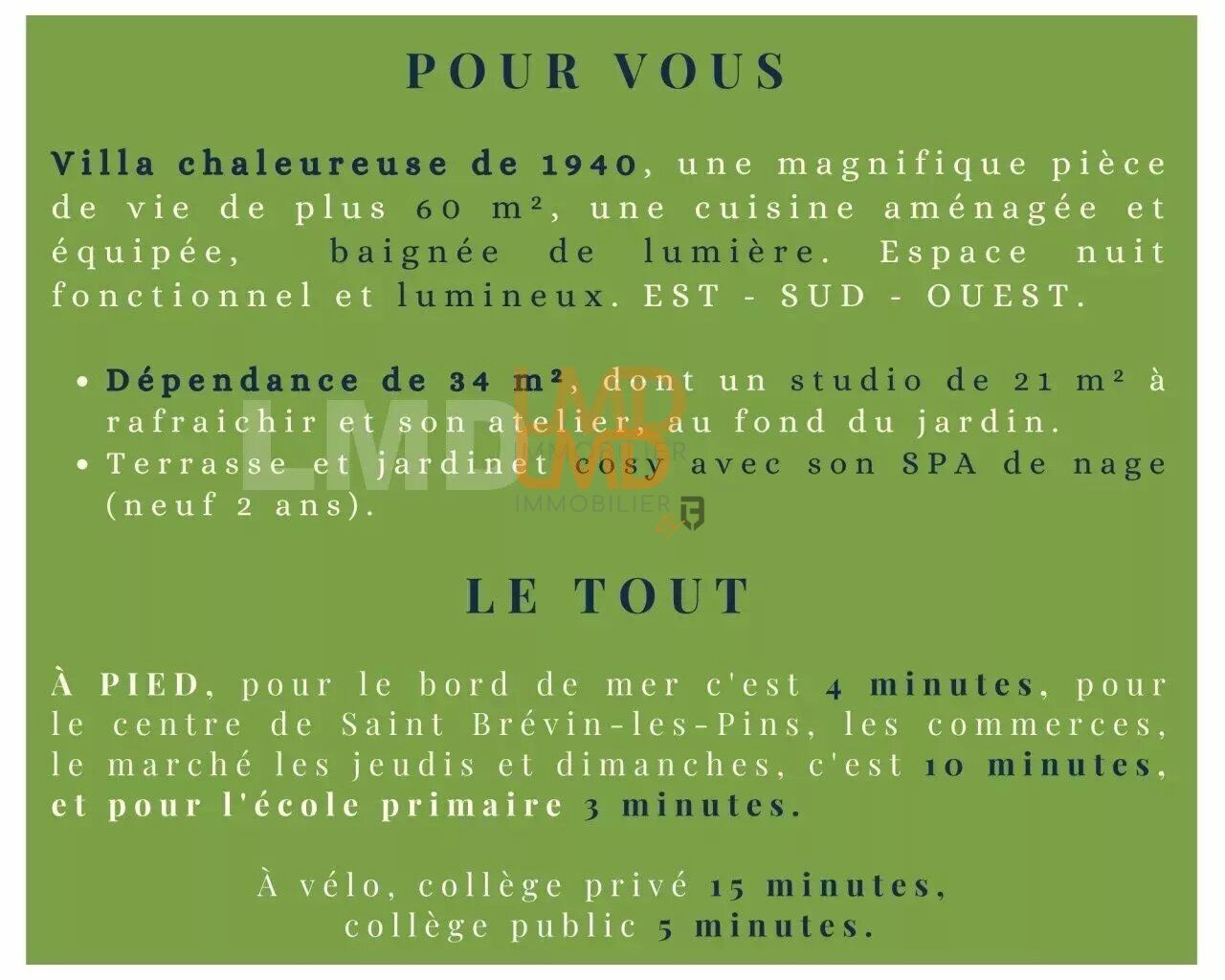 (EI) La Côte de Jade, seulement avec LMD, pour vous accompagner, vous renseigner et organiser une visite. Les honoraires sont à la charge vendeur.