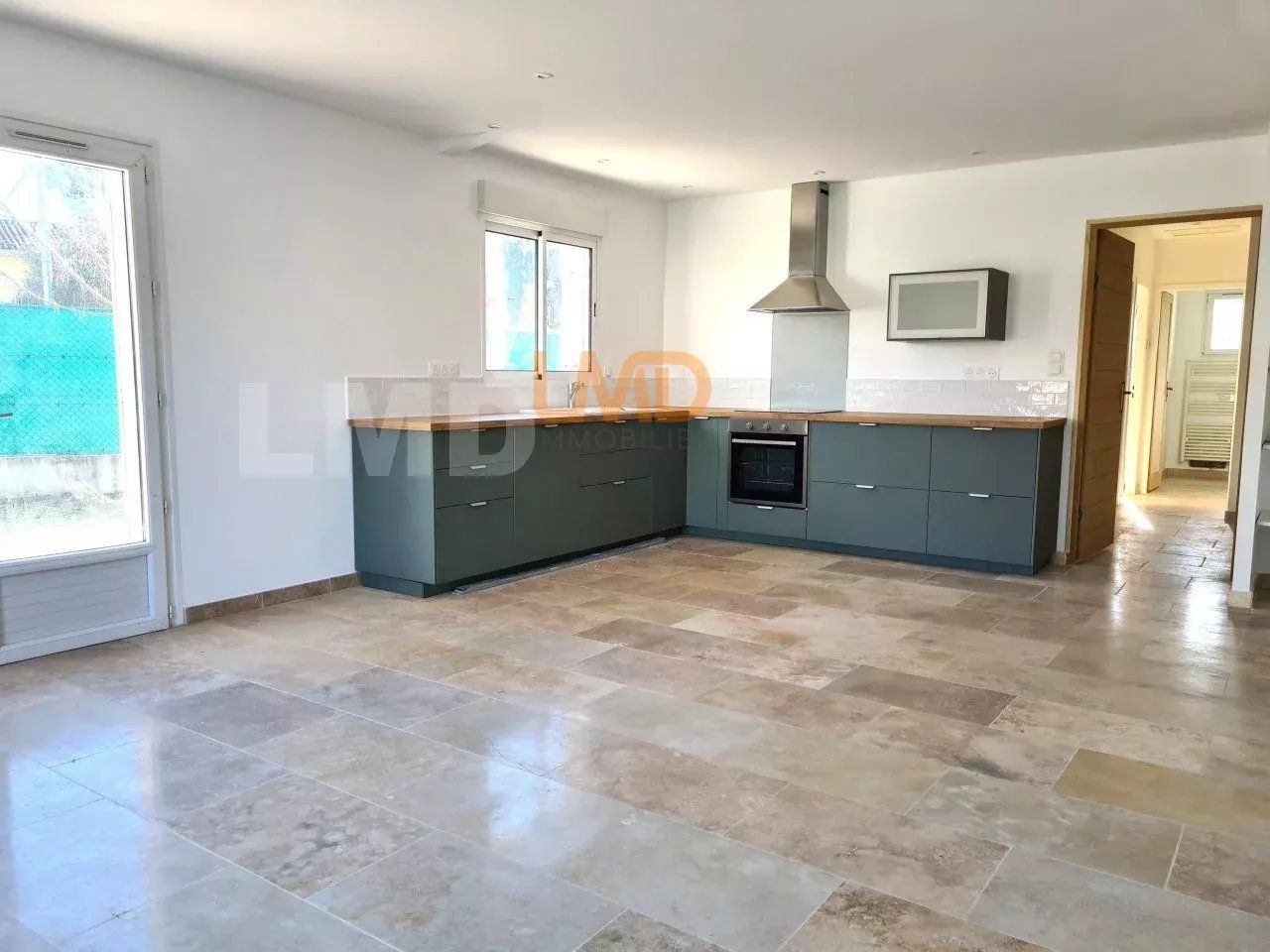 La maison se compose d'une pièce de vie lumineuse sur une cuisine ouverte et entièrement équipée.