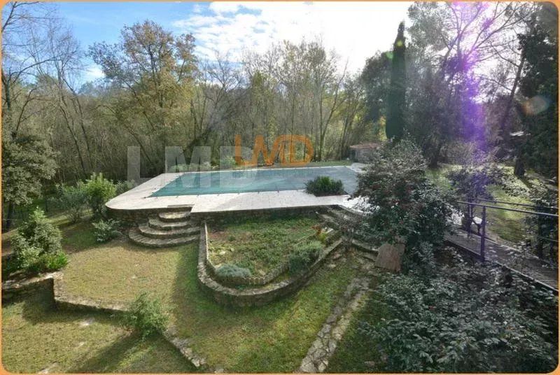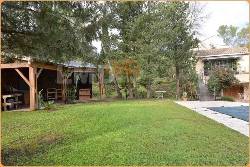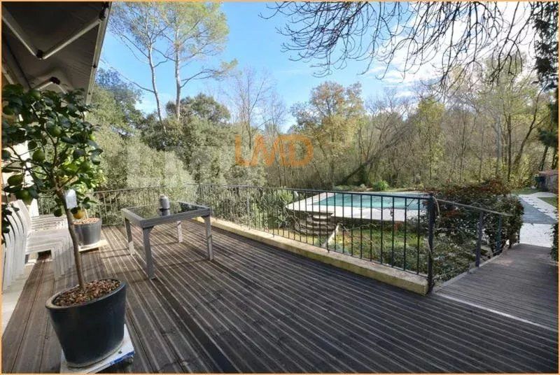 L'espace extérieur est juste fabuleux, 2700m2 de terrain arboré avec piscine 6m x12m, pool house en bois, terrasse couverte bois côté cuisine.