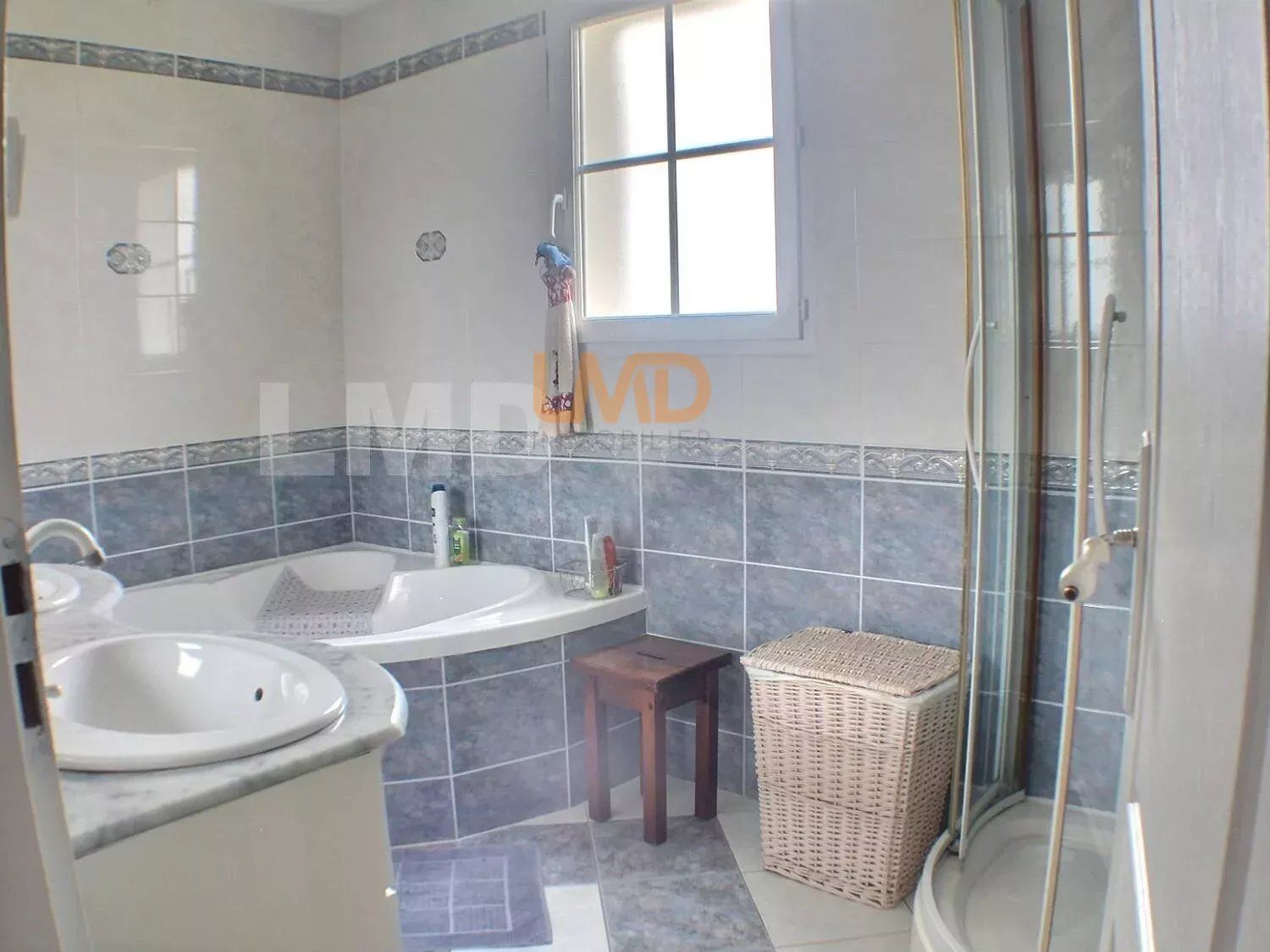 A l'étage, vous trouverez un palier desservant 4 chambres, 1 salle de bains (baignoire, douche et double vasque).