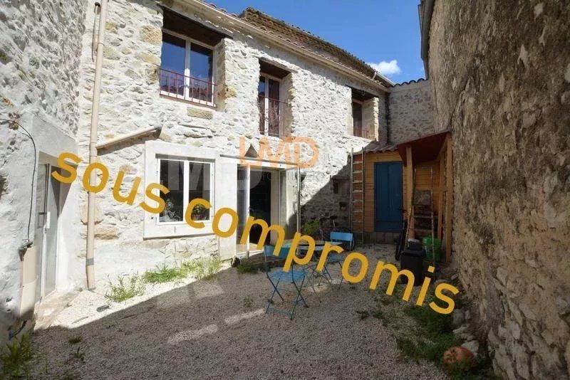 Elle est composée d'une cuisine séparée équipée, d'un salon très cosy sous une voute toute en pierre sèche, d'une chambre ou un bureau, toilette. Le salon et la cuisine s'ouvrent sur la cour de 42m2, un local permet de rentrer des vélos...on peut même stationner sa voiture.