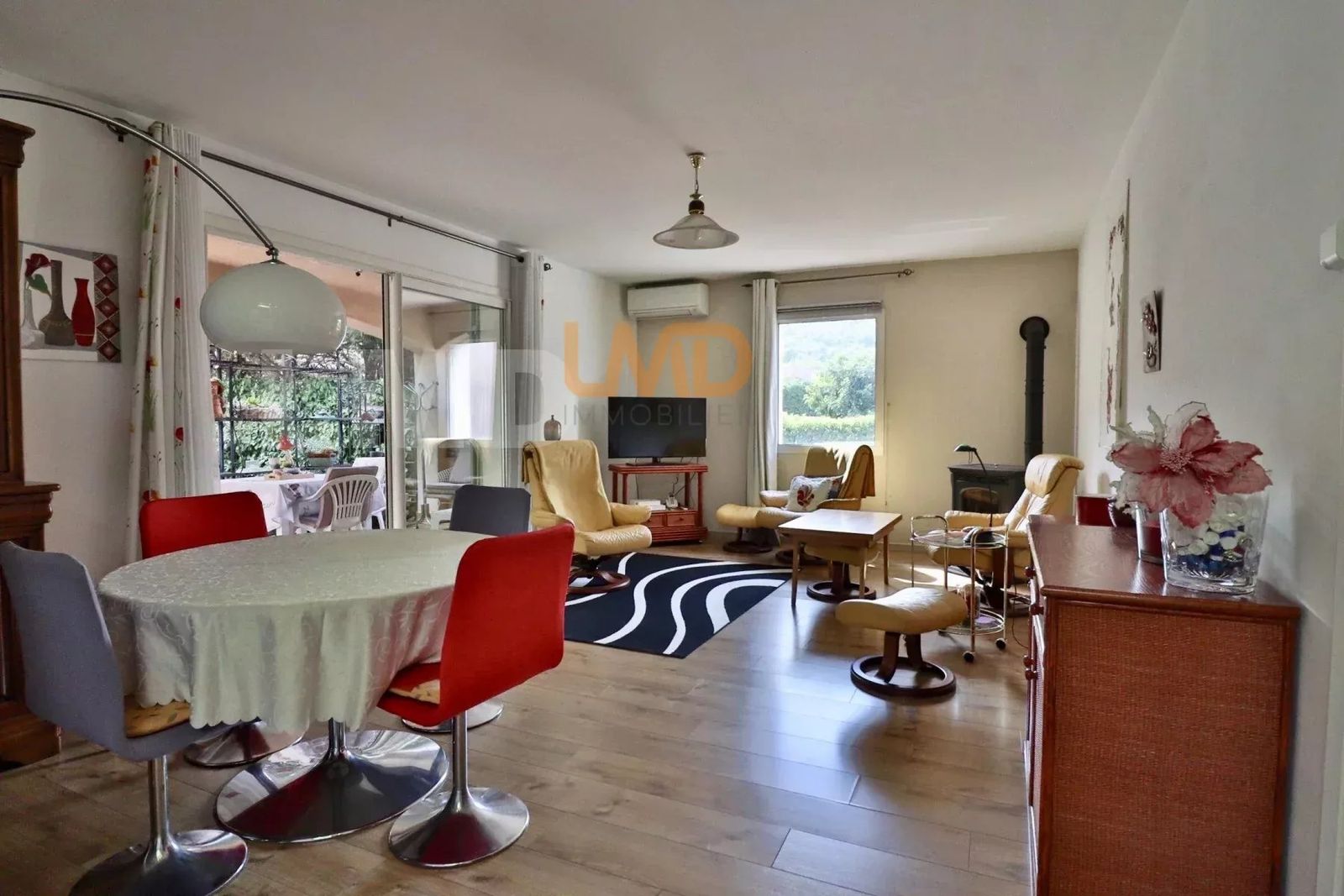 Côté équipement: parquet, double vitrage, poêle à granules, climatisation, cuisine équipée.