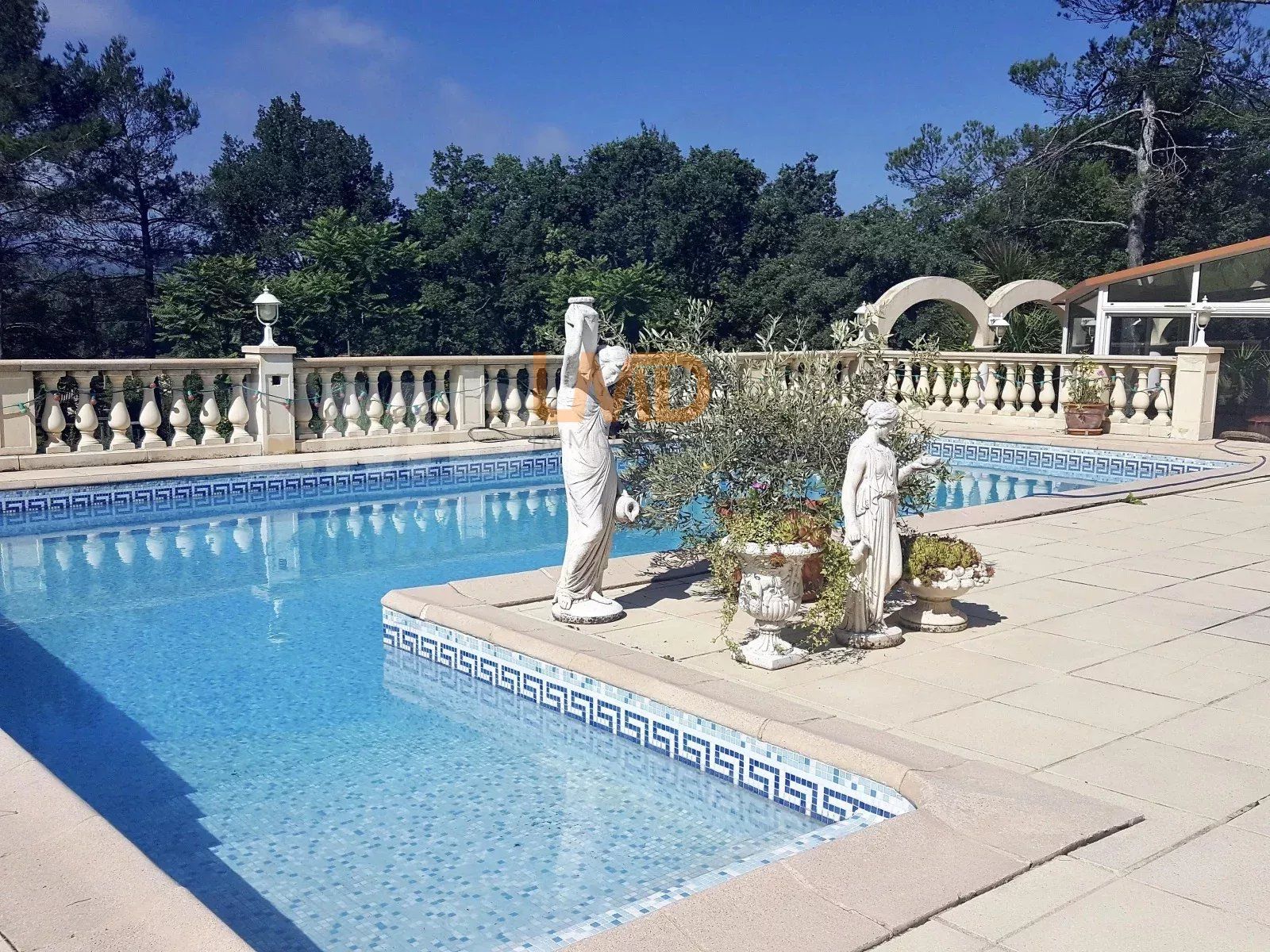 Composée de 11 pièces dont 7 chambres, cette propriété de 300m2 est construite sur un terrain paysagé de 12000 m2 comprenant une piscine de 10x5, 2 bars extérieurs, terrain de boule, garage, abri voitures...