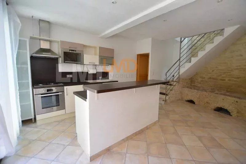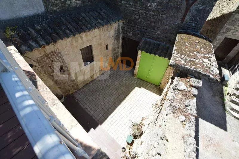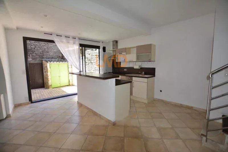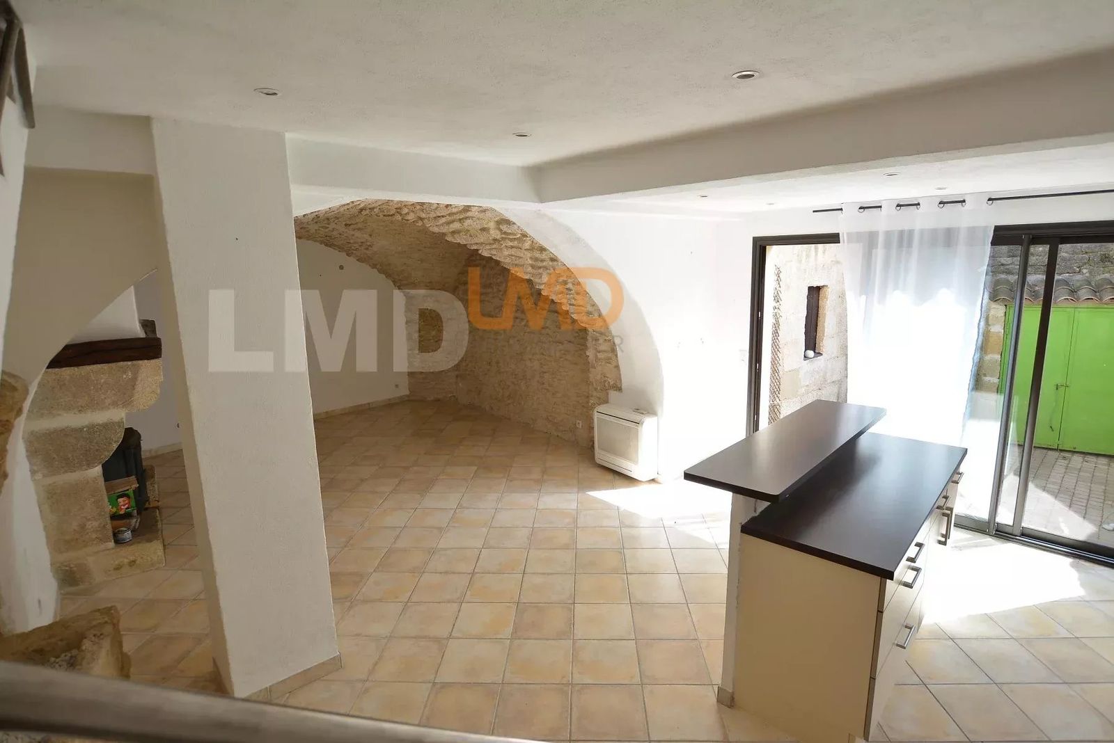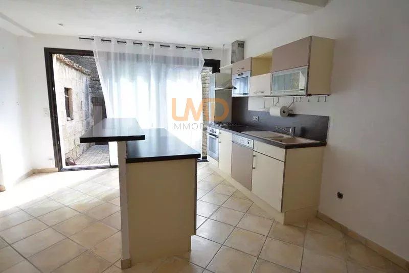 Elle offre une pièce de vie voutée en pierre sèche, avec insert et climatisation réversible, de grandes baies vitrées double vitrage donnant sur la cour ouvert sur une cuisine moderne équipée. Un WC séparé avec vmc.