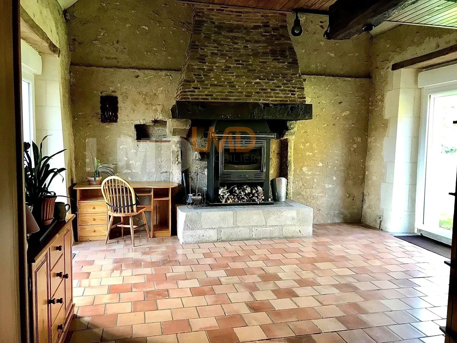vous propose une longère entièrement restaurée avec goût offrant une entrée, cuisine (21,2m2), séjour (24m2), un beau salon (30m2), salle d’eau avec toilettes + toilettes indépendants.
