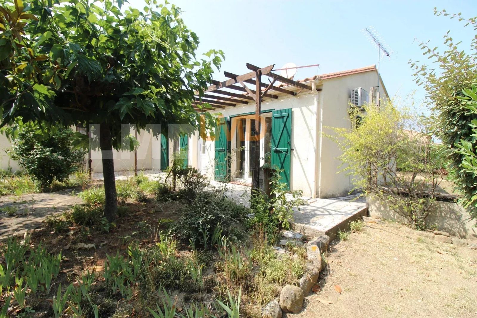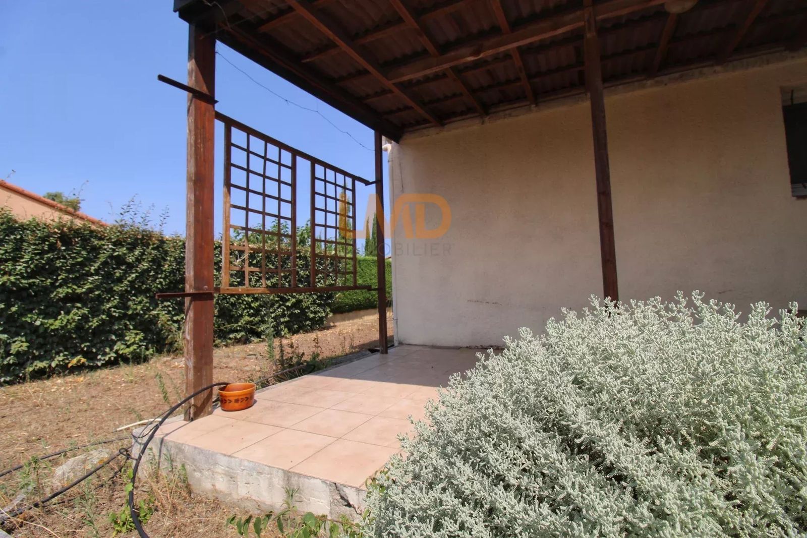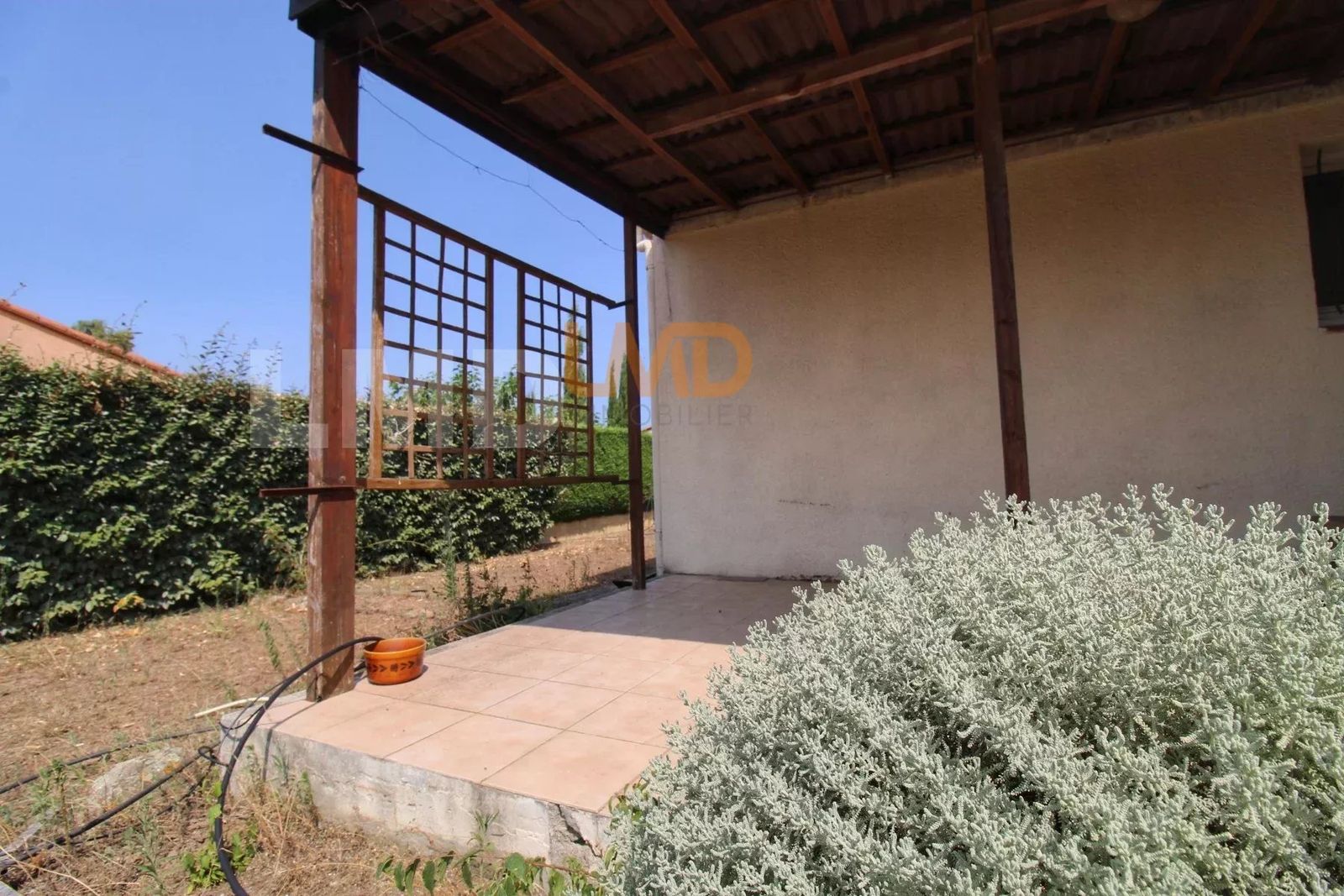Sur sa parcelle de plus de 600m2, cette villa de plain pied est composée d'une pièce de vie climatisée avec accès direct sur la terrasse.