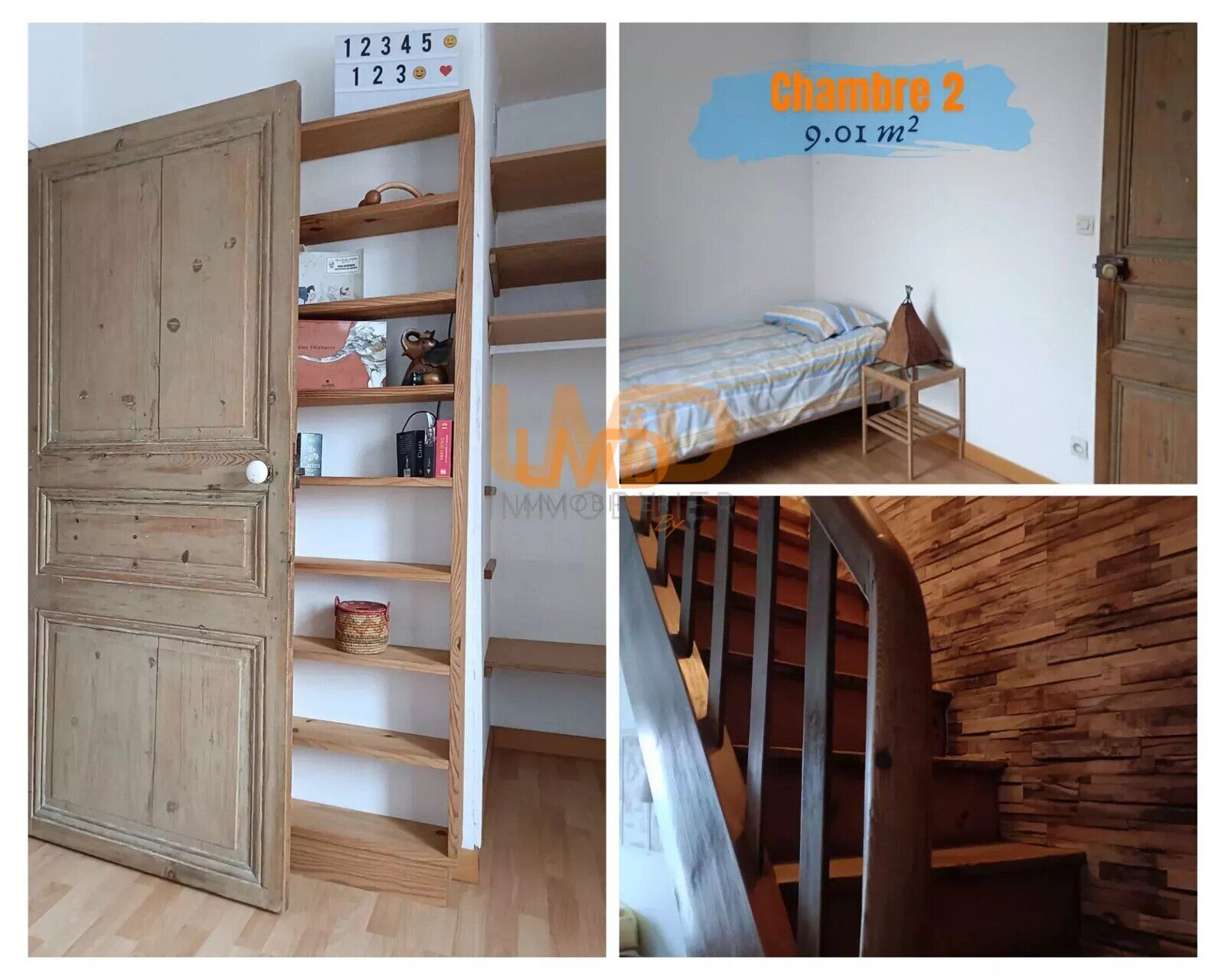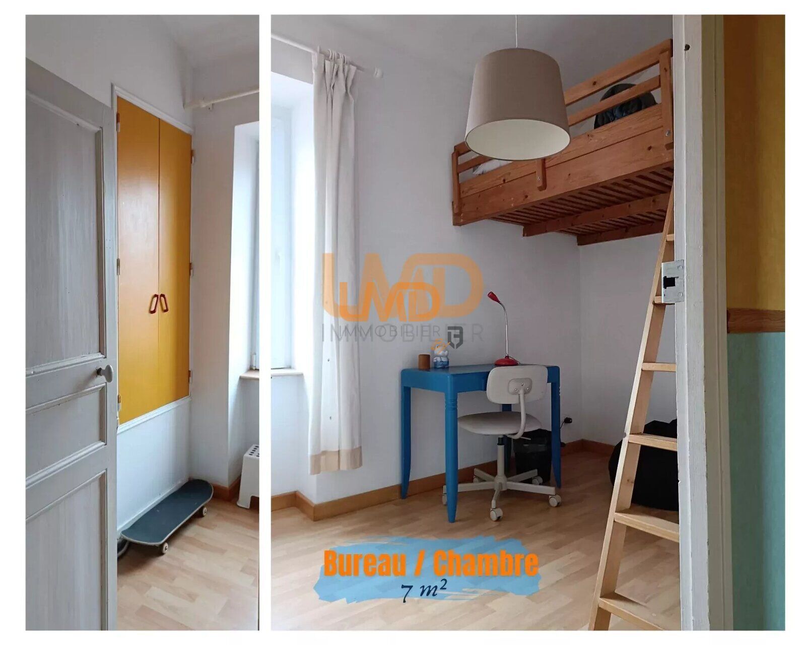 À l'étage, vous trouverez deux chambres, dont une vaste chambre traversante, ainsi qu'un bureau qui peut également être aménagé en chambre d'enfant ou en dressing spacieux.