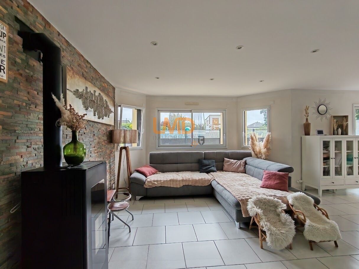 Une pièce de vie généreuse de 47 m², avec salon et salle à manger, baignée de lumière et équipée d’un poêle à pellets pour vos soirées cocooning.