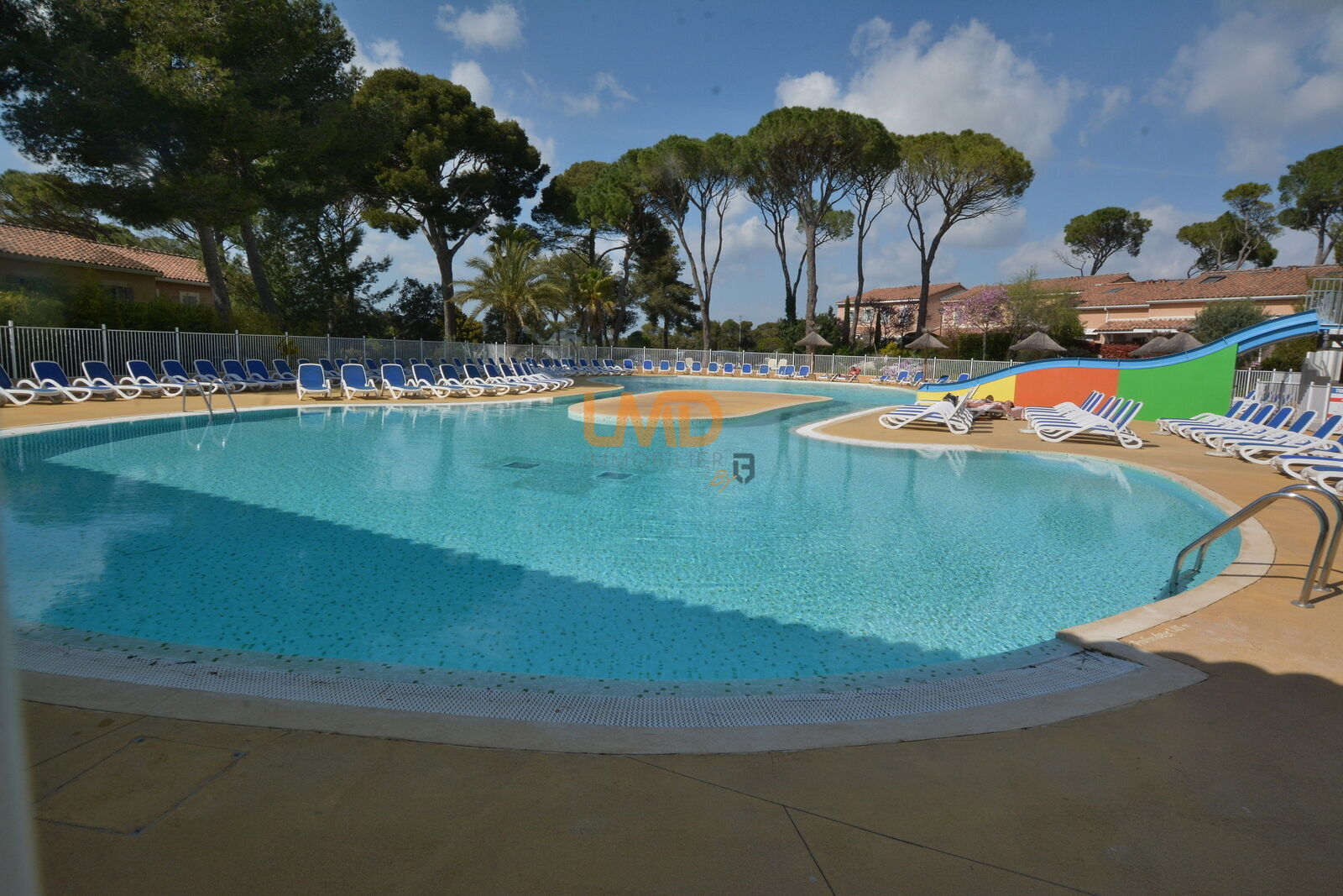 A disposition dans la résidence : une piscine d'été avec toboggan, une piscine d'hiver, mini golf, parcours sportif, terrain de tennis, jeux enfants, laverie, bar/restaurant.