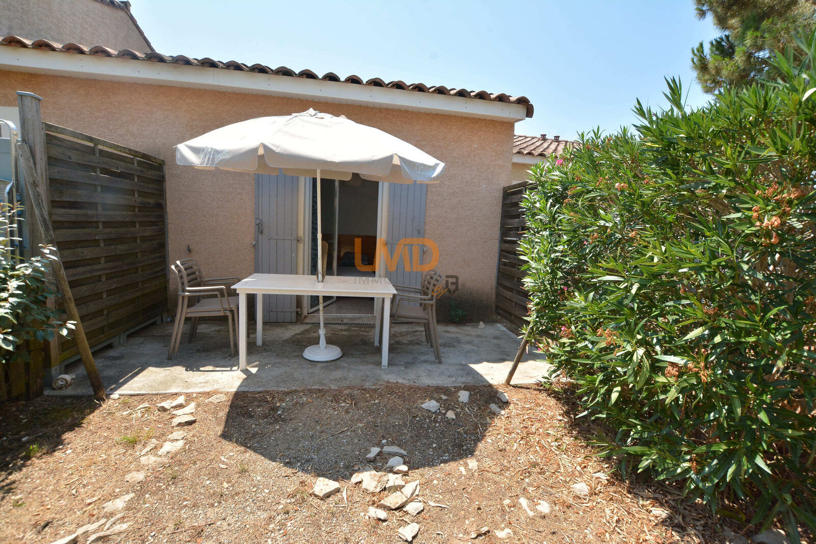 Exceptionnel ce logement de plain-pied traversant avec deux terrasses. Rare dans cette résidence du Mas des Vignes à Calvisson.