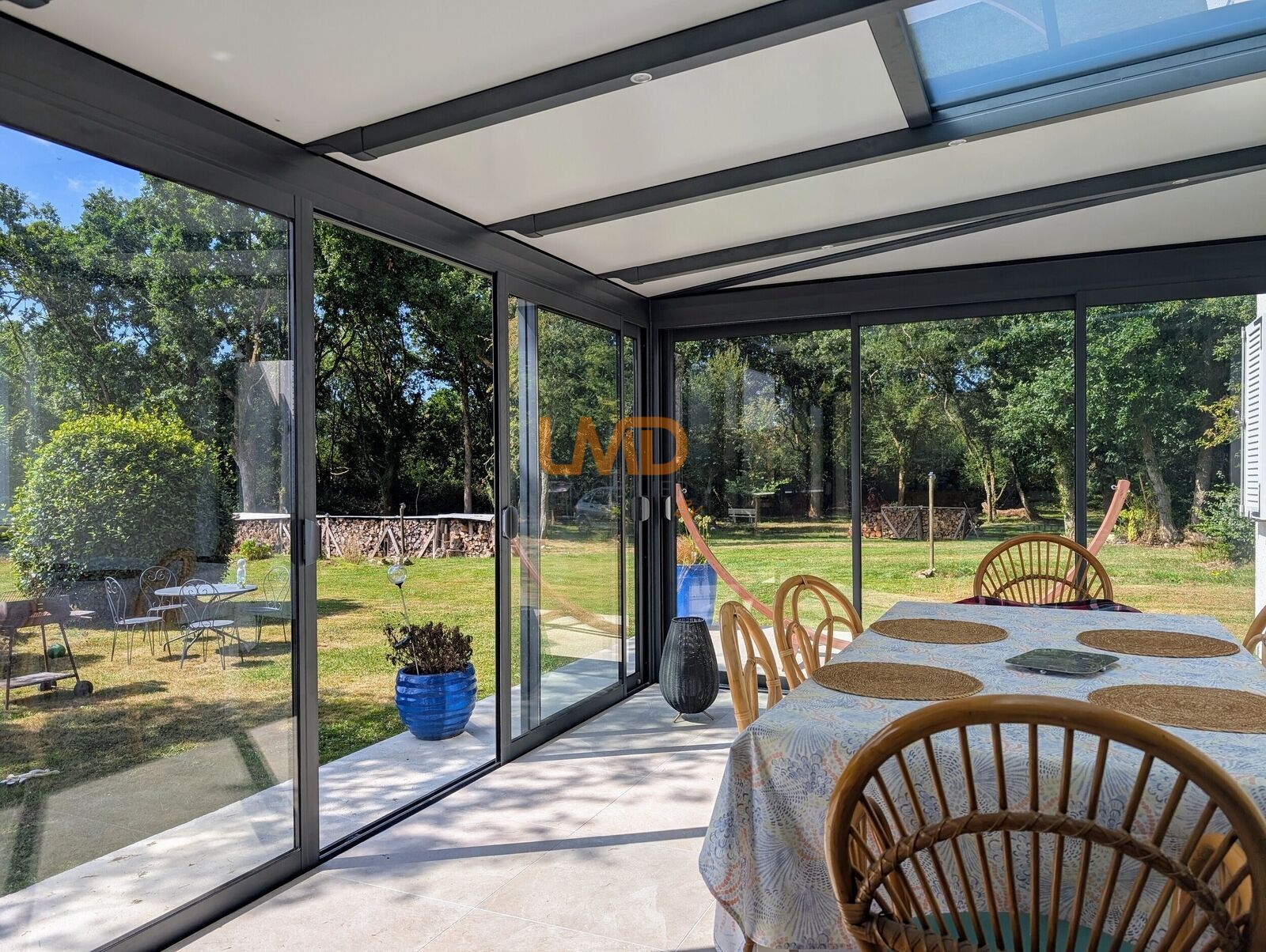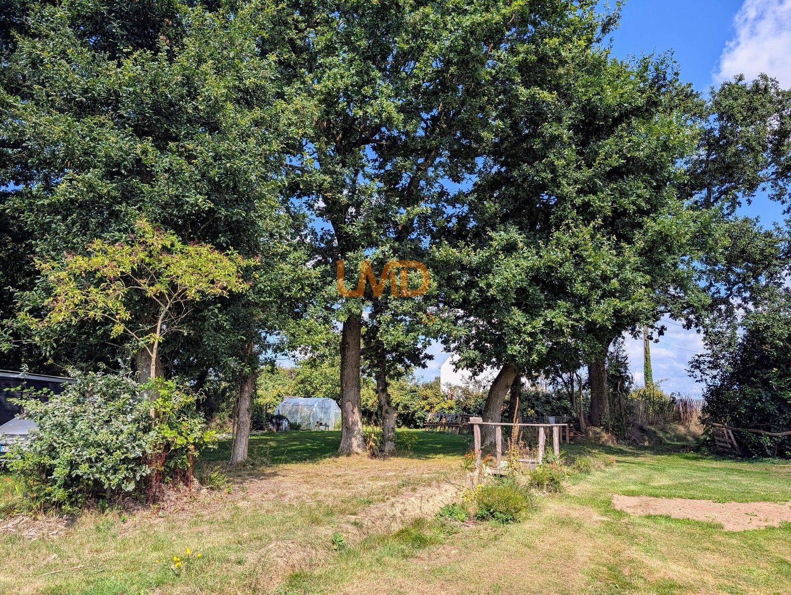 Deux cabanons, une petite serre et une superbe vue sur le bois qui appartient à la propriété.