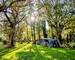 La véranda lumineuse donne une vue imprenable sur le bois de la propriété.