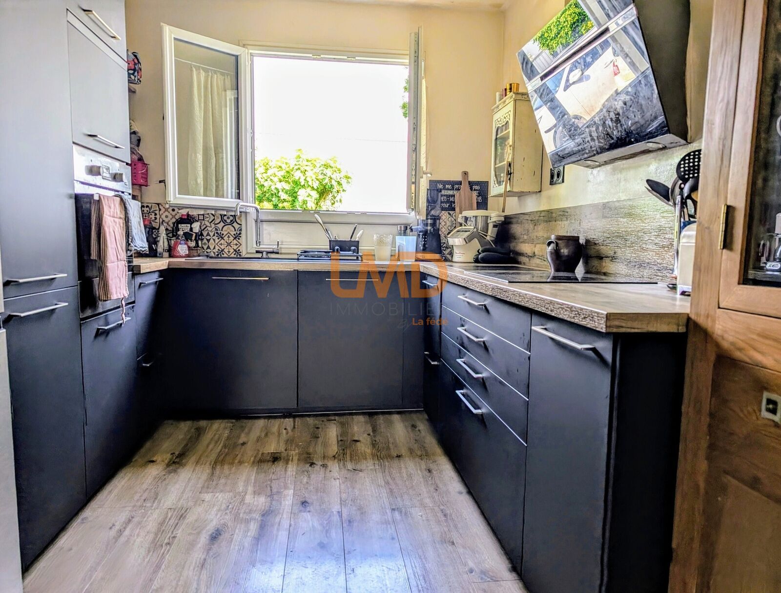 L’intérieur se compose de 3 chambres, une salle de bain fonctionnelle et un WC séparé. Le séjour est agrémenté d’une cheminée, apportant charme et chaleur. La cuisine américaine, équipée, s’ouvre sur le salon créant un espace de vie convivial et pratique.