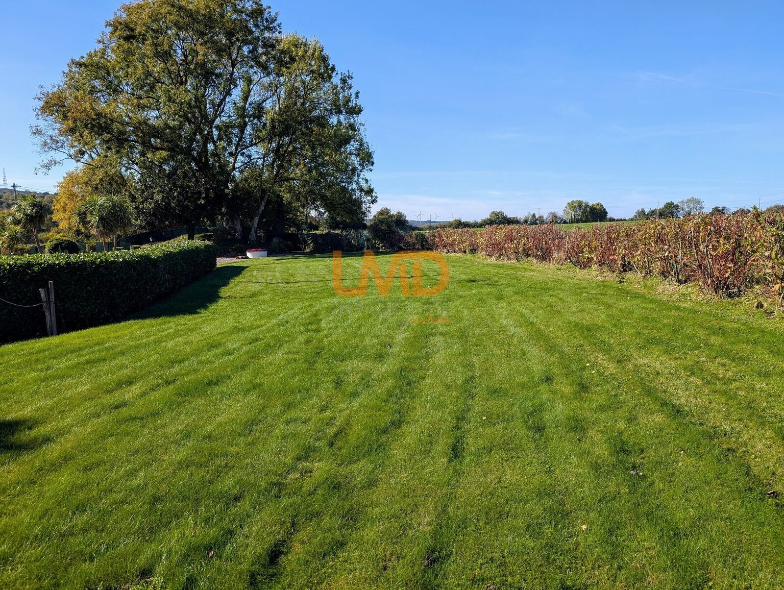 L'extérieur d'une superficie d'environ 5 000 m2 est arboré et donne une belle vue panoramique sur la nature. les places de stationnement sont à aménagées selon ses idées.