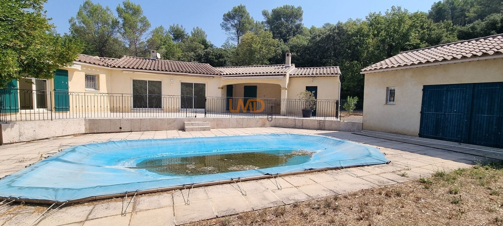 Dépendances : un garage, un carport pour deux véhicules, un atelier, ainsi qu’une pièce destinée à devenir le pool house.