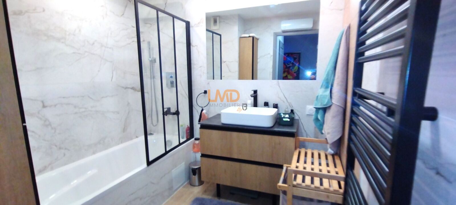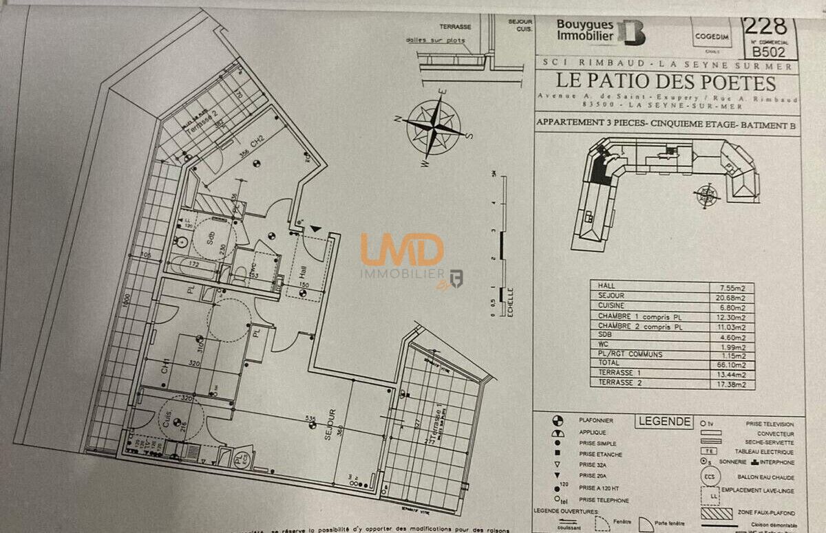 Splendide ! Dans secteur calme de La Seyne sur Mer mais proche de la grande zone commerciale, T3 5è et dernier étage avec garage en sous-sol. Ce magnifique T3 au coeur de cette résidence de 2012 a été entièrement rénové en 2025 et propose de belles prestations : Un séjour lumineux avec un accès sur une terrasse confortable offrant un beau panorama, une vaste cuisine entièrement équipée moderne. Par souci d'intimité, vous apprécierez sa partie privée bien distincte. Outre la terrasse principale, chacune des deux chambres et la cuisine ont un accès vers la seconde terrasse. Porte blindée, clim dans tout l'appartement. Garage en sous-sol. Excellent DPE, cet appartement consomme peu d'énergie. Le reste est à découvrir lors d'une visite.