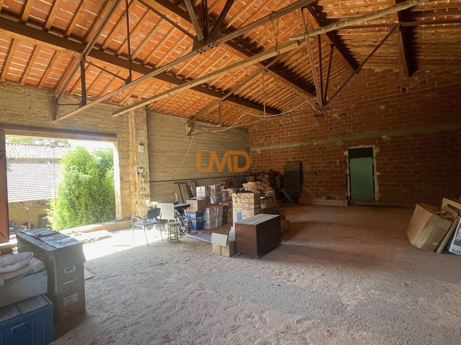 A l'entrée, Un hangar agricole couvert de 227 m2, permettant le stationnement de vos véhicules ou l'aménagement d'une partie en espace de stockage.
