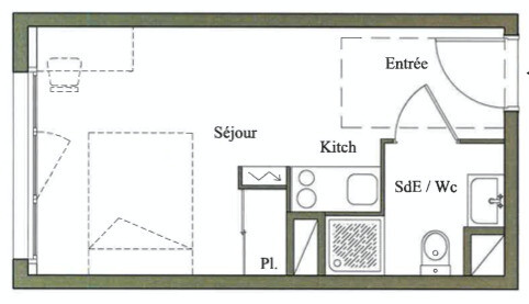 Avec une vue dégagée exposé Sud-ouest, il offre une entrée, une salle d'eau avec toilette de 3 m², une pièce à vivre avec kitchenette et placard de 17 m².