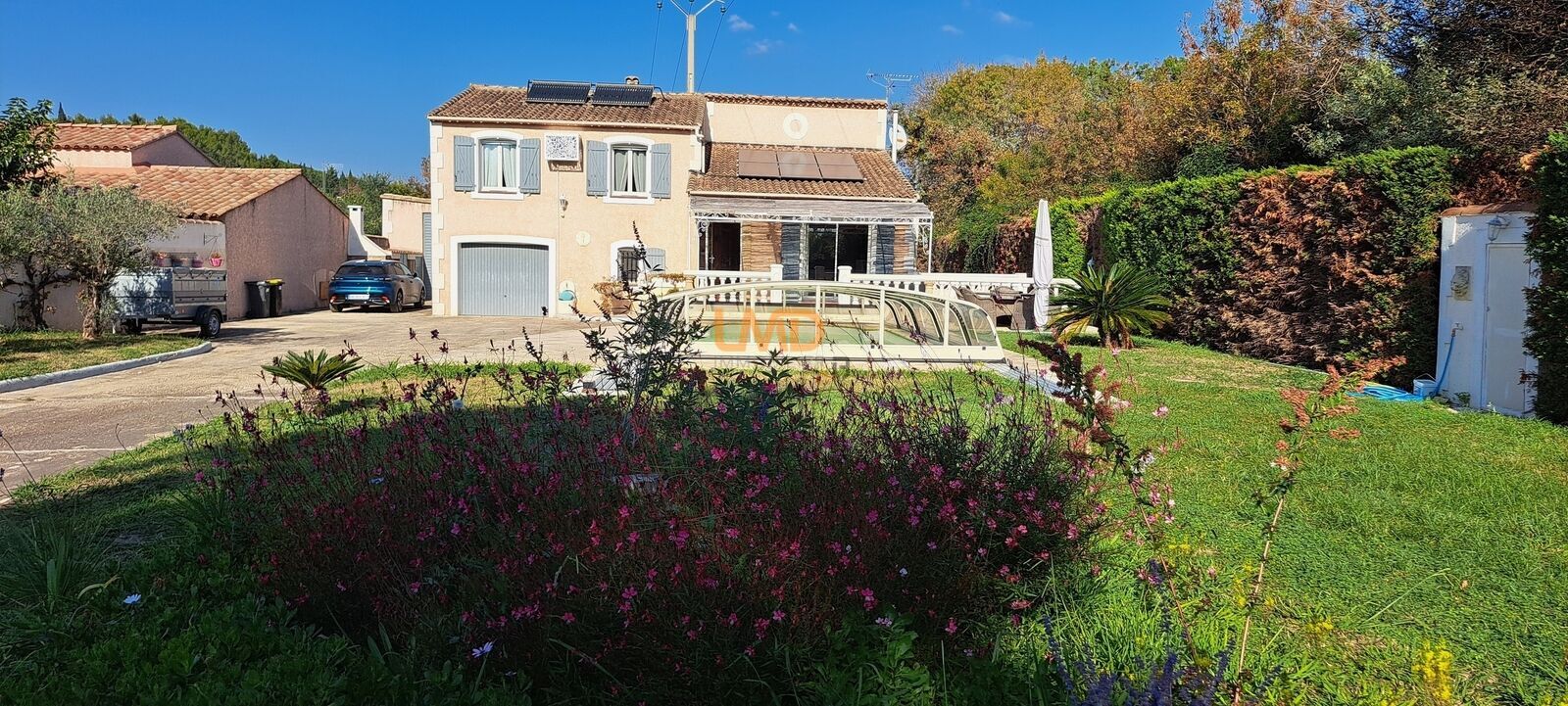 Implantée sur une belle parcelle arborée de 1100m² sans aucun vis-à-vis, avec piscine et protection alu, la maison développe 147 m² habitables : un vaste séjour double avec poêle à granulés au toit cathédrale, une cuisine américaine avec multiples rangement, une vaste buanderie, une terrasse Sud avec vue jardin et piscine. A l'étage, trois chambres dont une suite parentale climatisée, un bureau spacieux sous les combles, ainsi qu'un garage carrelé, une dépendance avec cuisine, salon, douche et WC et un atelier pouvant accueillir un camping-car. Le potentiel de cette maison est impressionnant.