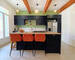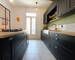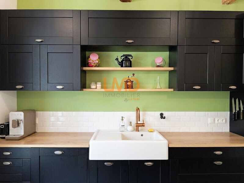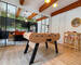 La cuisine fonctionnelle et bien agencée avec son ilot central, s'ouvre par une verrière sur la salle de jeux chaleureuse.