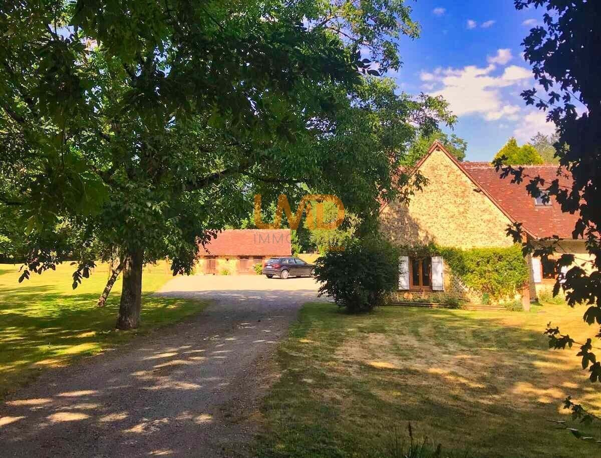 Le tout est implanté sur un terrain arboré de 5 934 m², traversé par la rivière, avec dépendances, garage et remise.