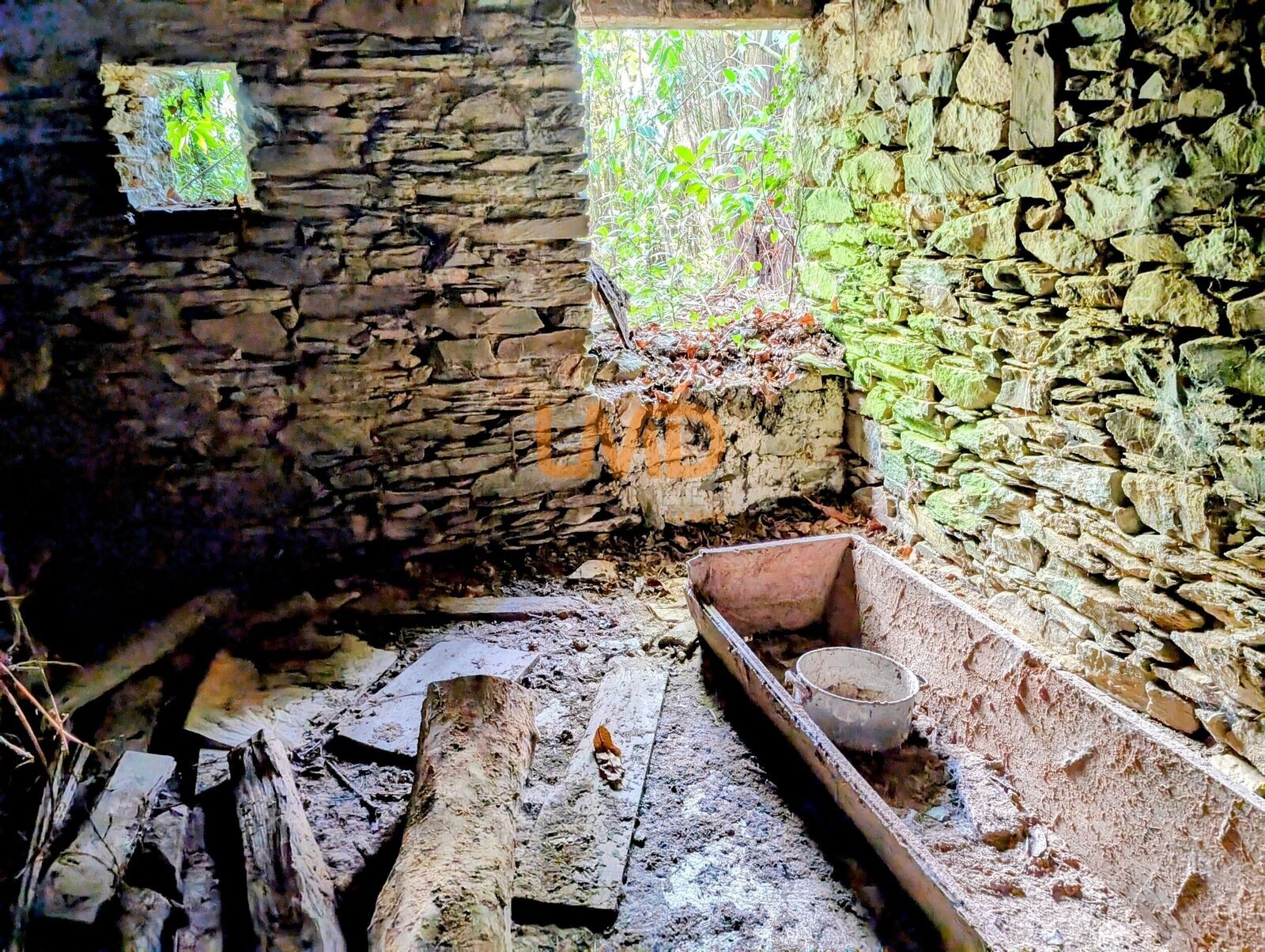 La maison en pierre est entièrement à rénover, permettant de l'aménager selon vos goût et vos besoins.