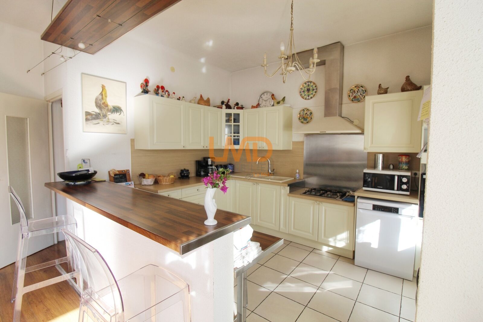 Vous apprécierez sa lumineuse pièce de vie climatisée avec cuisine ouverte.
