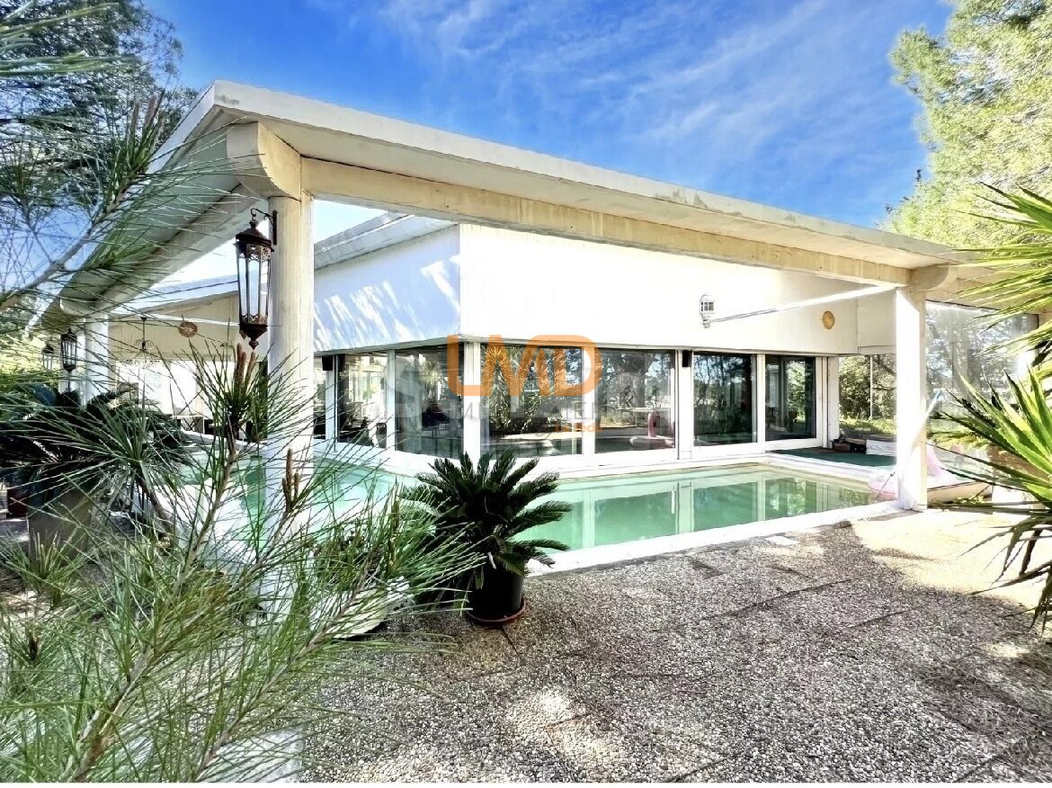 elle dispose de plusieurs terrasses, avec un large espace arboré et de plantes méditerranéennes, avec une exposition sud, proche de toutes les commodités.