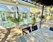 plusieurs terrasses représentent 200 M2 environ avec des espaces de repos entourent ce bien pour profiter de l'ombre des arbres. Une piscine atypique qui reprend deux côtés de la maison , avec un pool house.
