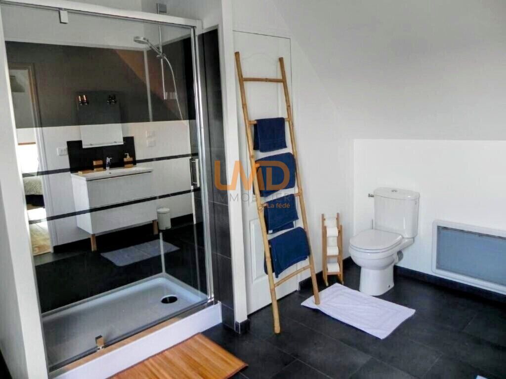 A l'étage : 2 chambres spacieuses chacune avec leur salle de bain avec douche, idéal pour des chambres d'hôtes, ainsi qu'une très grande pièce pouvant faire office de chambre, bureau, salle de jeux ou espace de détente selon vos envies.
