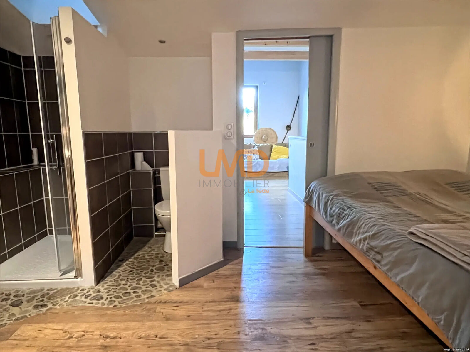 La maison est équipée d'un système de chauffage comprenant le bois et l'électricité pour un confort optimal tout au long de l'année. La cuisine est entièrement aménagée, offrant un espace fonctionnel.