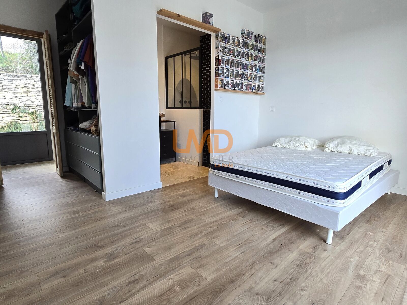 La partie nuit se compose de trois chambres, chacune avec sa salle d’eau privative et son dressing, ainsi qu’un cellier et un WC indépendant.