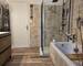 Il se compose d’une entrée, d’un séjour lumineux, d’une cuisine semi-ouverte aménagée, d’un cellier, de quatre grandes chambres dont une avec cheminée, d’une salle de bains avec douche et baignoire, et, d’un WC indépendant.
