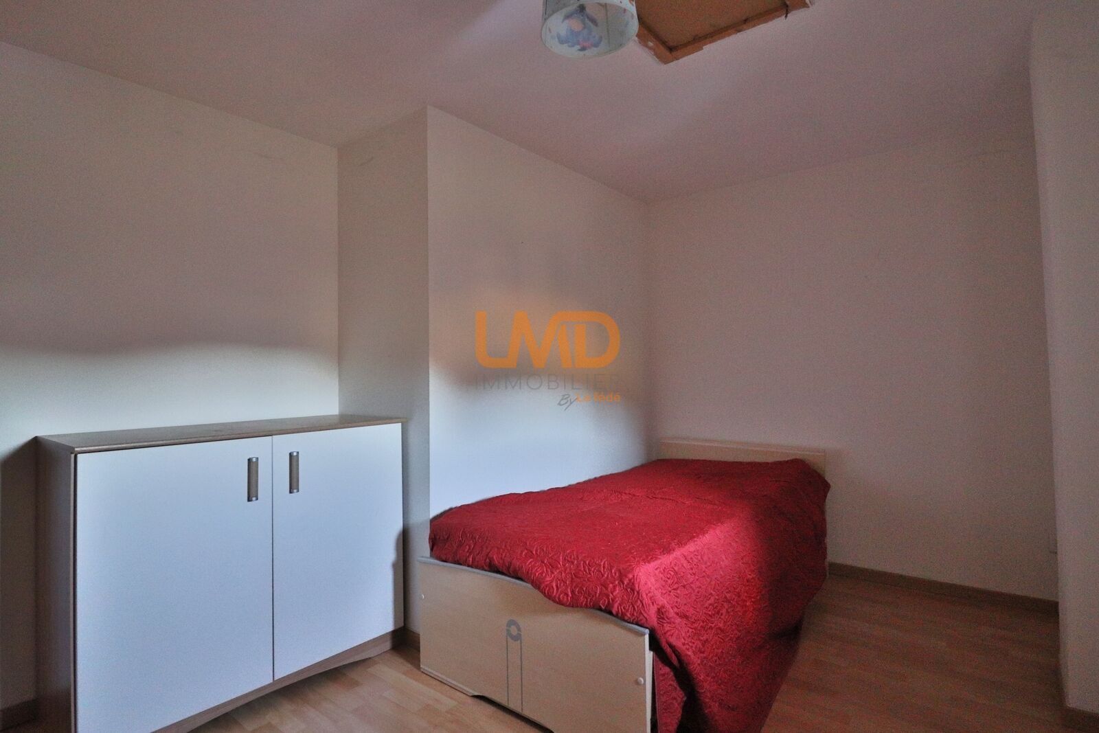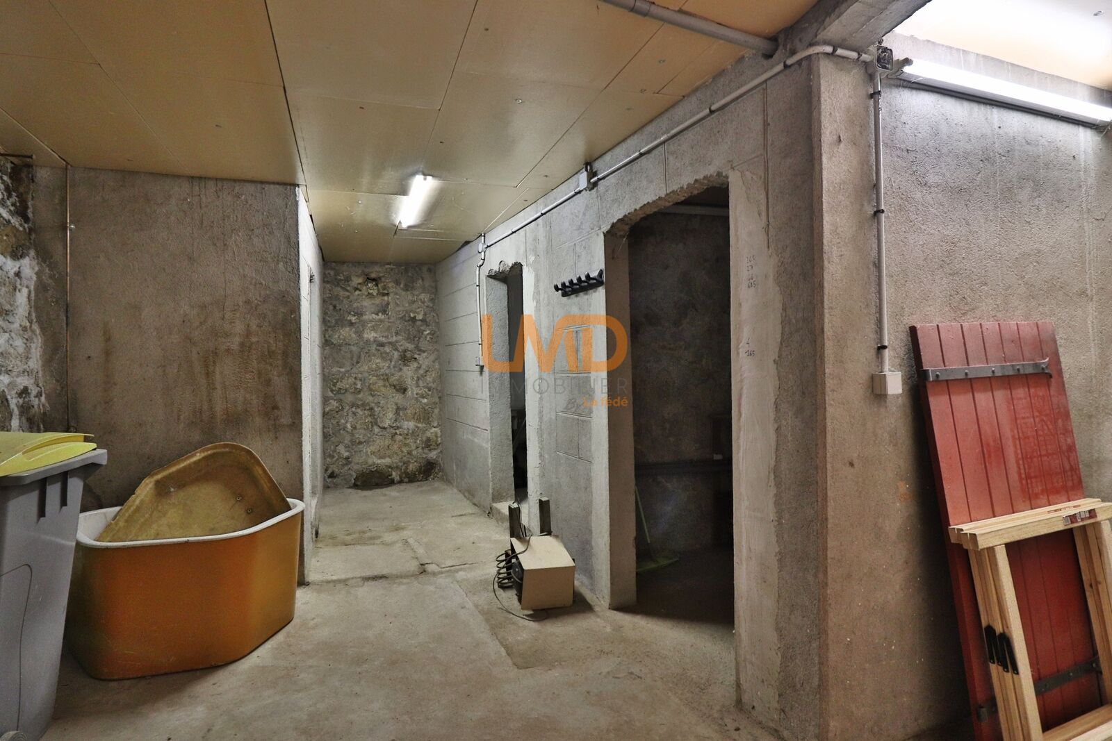 À l’étage, un couloir dessert deux chambres, une salle de bain et un WC séparé. Le deuxième niveau offre une pièce palière utilisée comme chambre, avec la possibilité de la fermer pour créer un espace plus indépendant, ainsi qu’une seconde petite chambre. En sous-sol, une cave permet un espace de stockage supplémentaire.