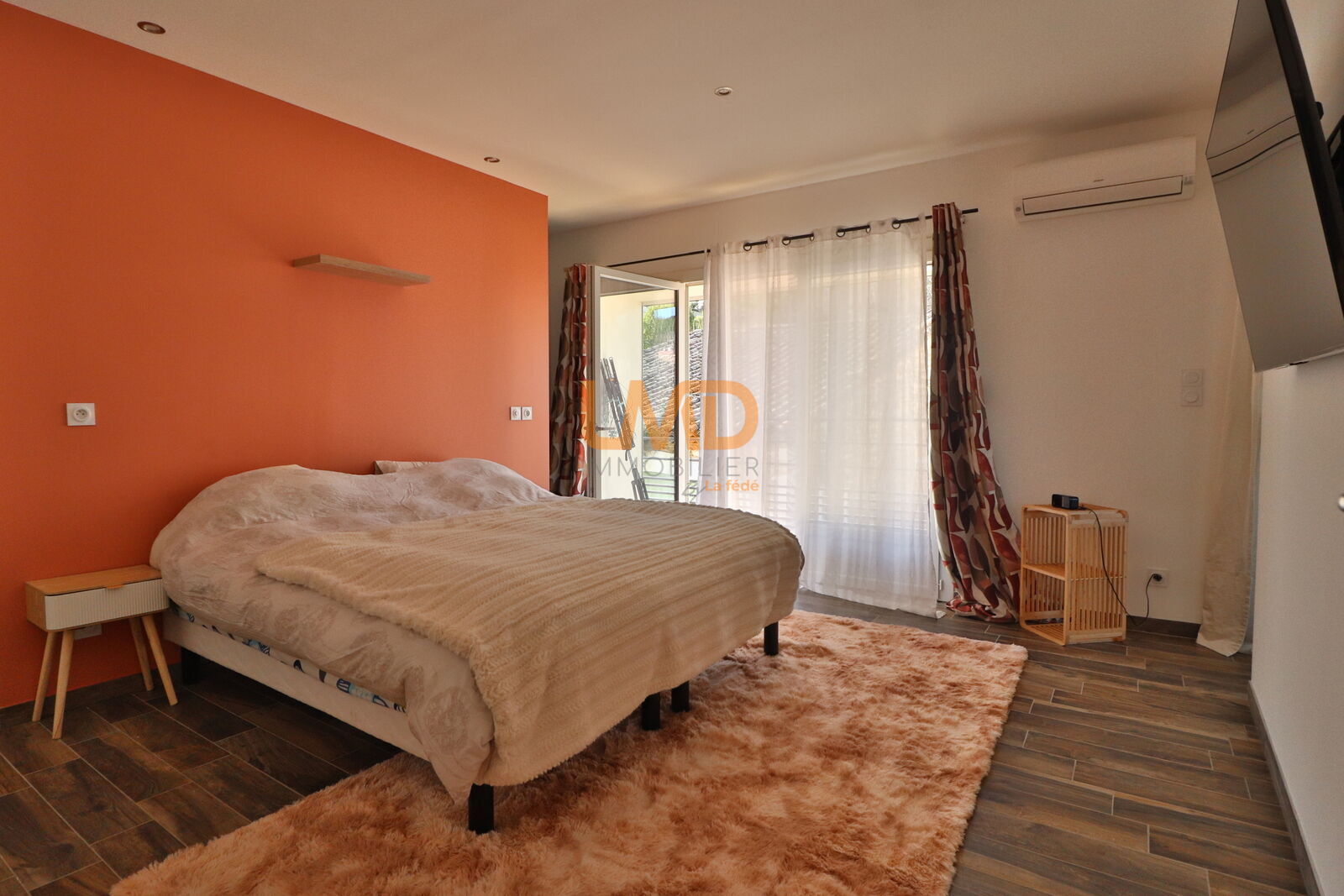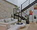 Le chauffage est par poêle à granulés et climatisation réversible. Béton imprimé, bois, acier, pierres sont
