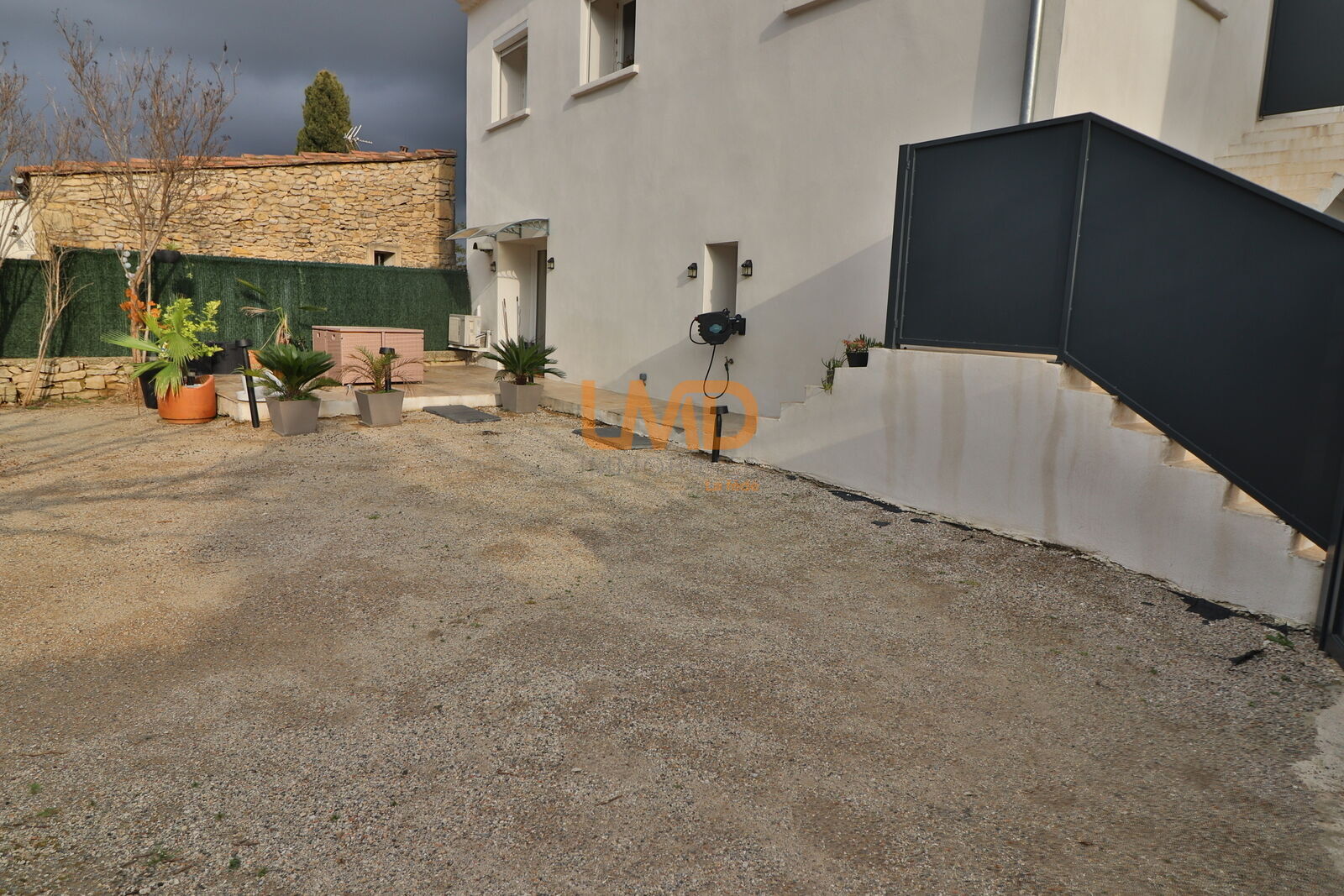 La maison dispose en plus d'un grand garage de 60m2 avec une belle hauteur sous plafond et d'un portail automatique avec la possibilité de rentrer les voitures. Ainsi que deux autres places devant la maison.