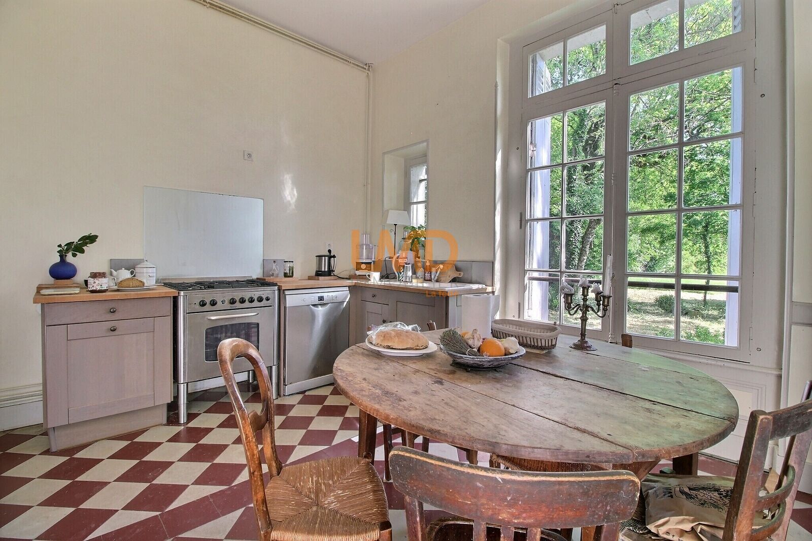 La maison principale développe environ 253 m² habitables immédiatement utilisables. Elle se compose de pièces de réception spacieuses, d’une cuisine, de plusieurs chambres et d’espaces de vie lumineux conservant le charme de l’ancien (hauteurs sous plafond, escalier bois, volumes).